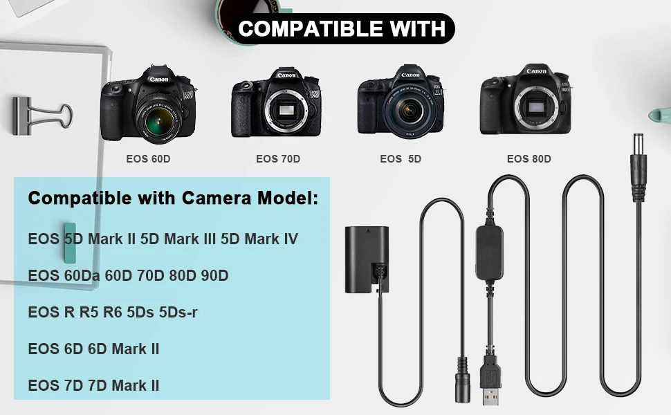 USB-адаптер для аккумулятора Canon EOS 5D Mark III II 6D 7D 60D 70D 80D 90D R5 R6 5DS