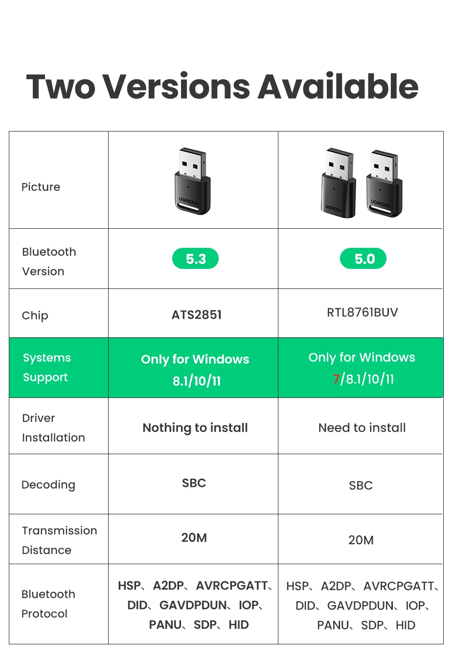 Compatible with Bluetooth 5.3 / 5.0 (only for win8.1/win10/win11)
