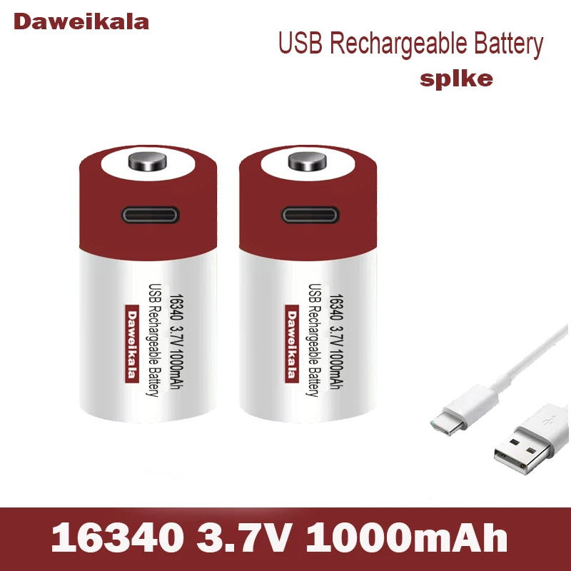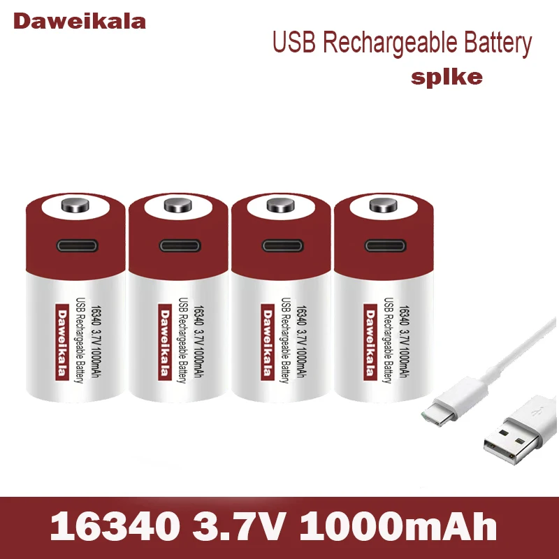 Batterie Typ: USB 3,7 V ICR16340 1000mAh Li-Ion Akku