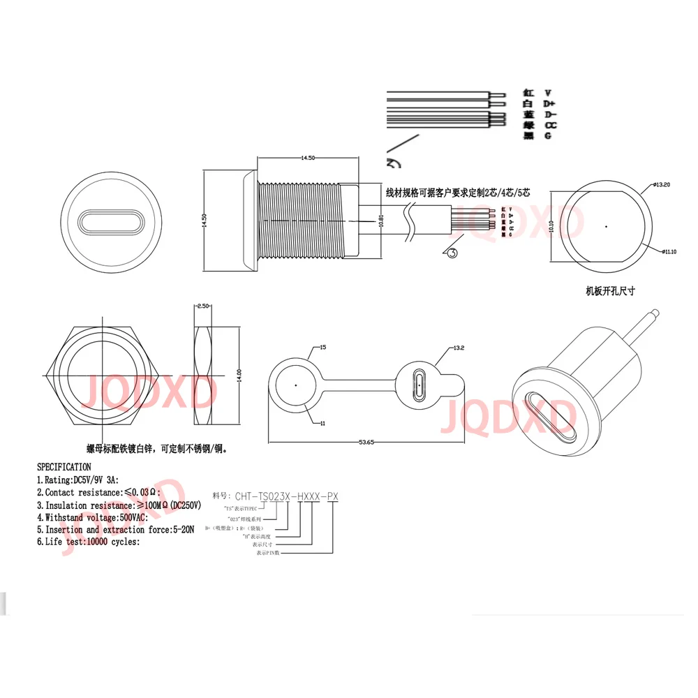 USB-C 5A розетка для зарядки высокого тока с M11 гайкой Защелкивающейся пластиной USB C TYPE-C Женский Тип C водонепроницаемый гнездовой разъем
