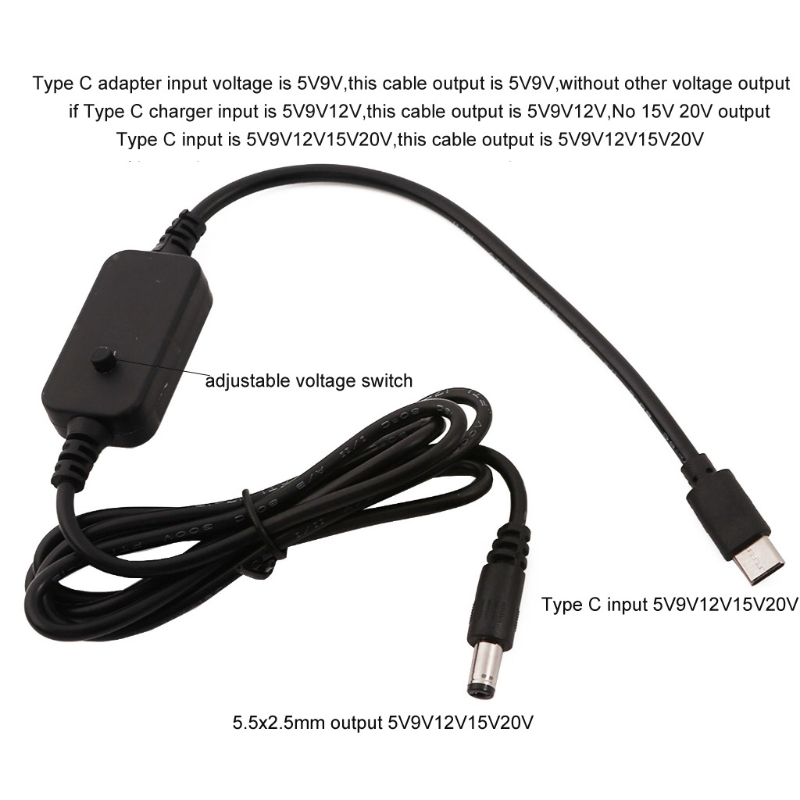 Этот кабель поддерживает выход 5V 9V 12V 15V 20V, если выход вашего адаптера USB C pd составляет 12Vmax, наш кабельный выход также составляет 12Vmax, если вам нужен выход 15 В 20 В, ваш адаптер USB C должен иметь выход 15 В 20 В.
