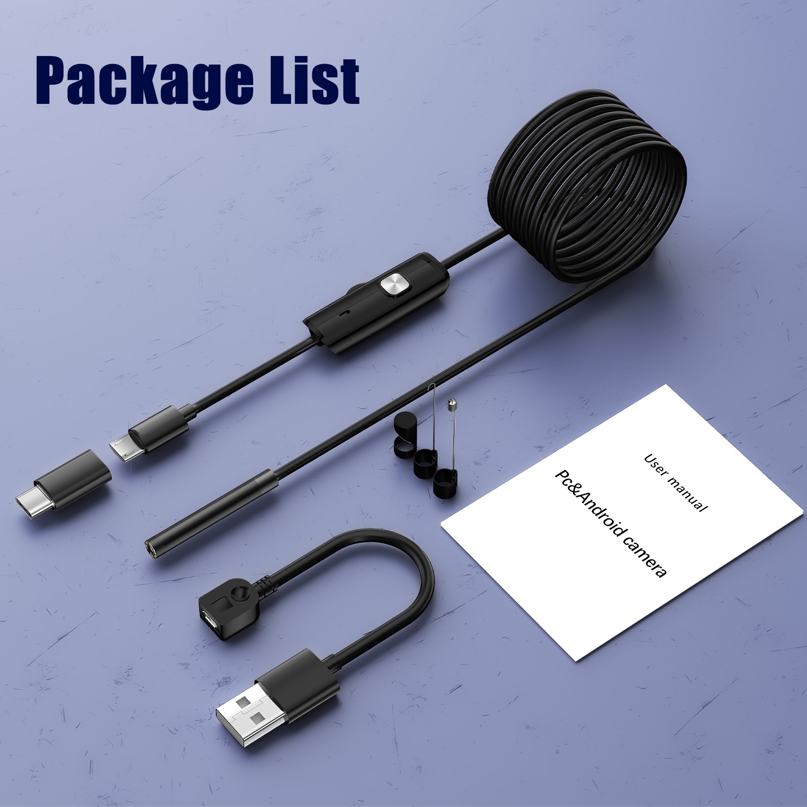 Эндоскоп Android + адаптер USB + адаптер Type-C, поддержка телефонов/ПК/планшетов Android