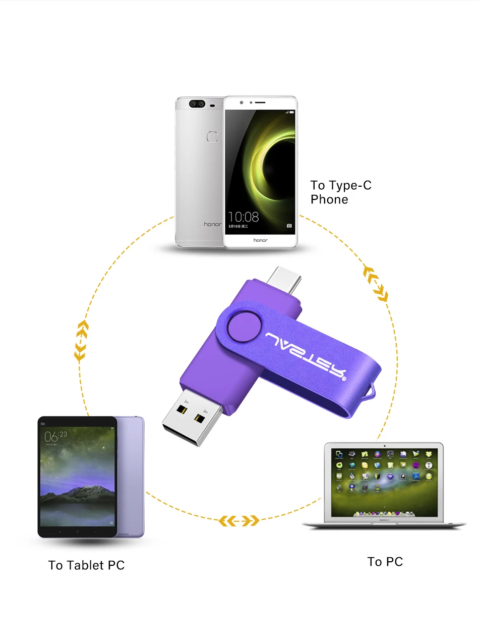 USB-флеш-накопитель 2-в-1, Type-C, OTG 2,0, 128/64/32/16 ГБ