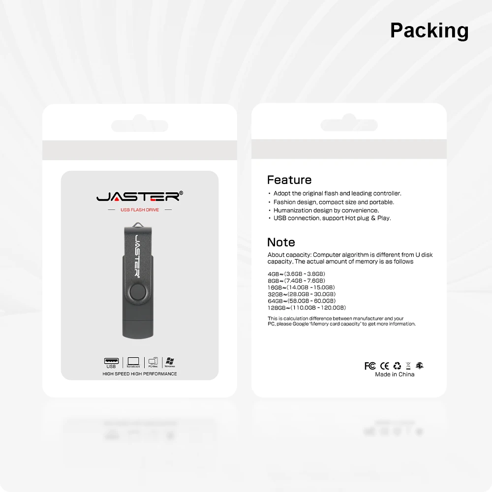USB-флеш-накопитель JASTER на Android/ПК, OTG, 4-2,0 ГБ