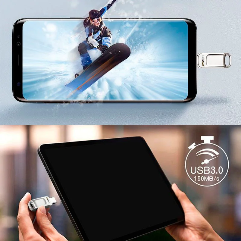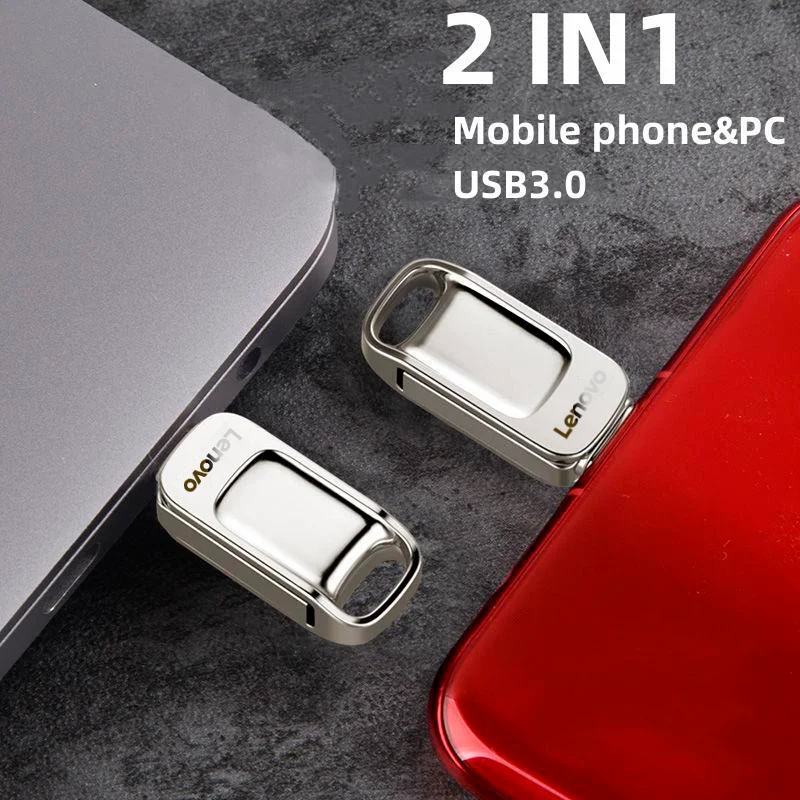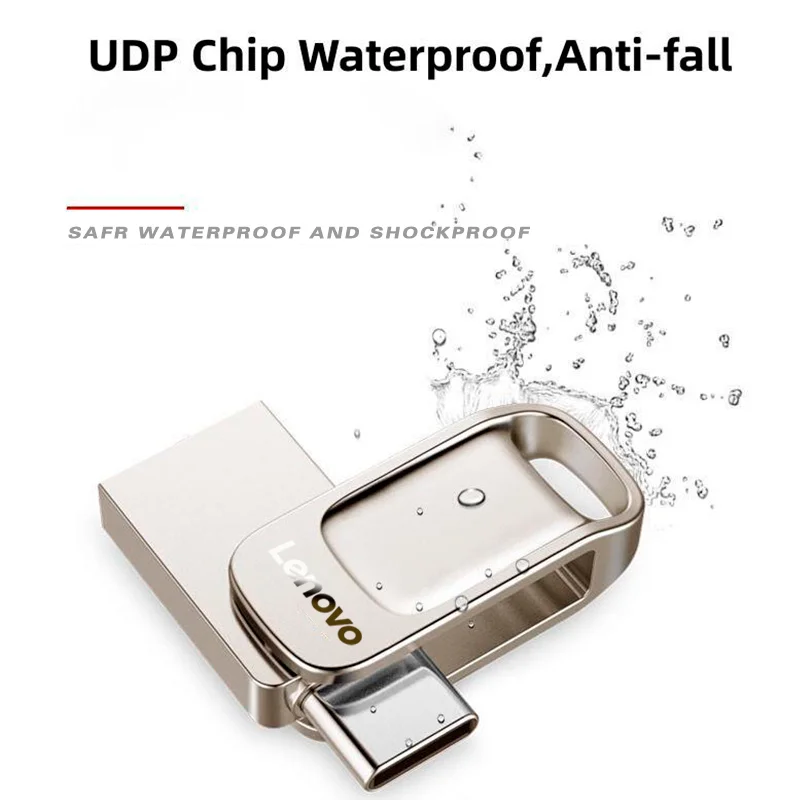 Lenovo 2 ТБ USB флэш-накопитель 3,0 металлический высокоскоростной портативный Флешка 1 ТБ 512 ГБ большой емкости память USB флэш-диск TYPE-C адаптер
