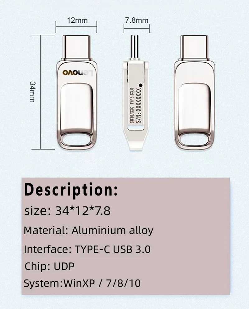 USB-флеш-накопитель Lenovo, 3,0 дюйма, 1 ТБ, 512 ГБ