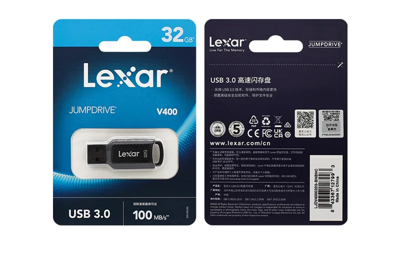 USB-флеш-накопитель Lexar JumpDrive V400, USB 3,0, 32/64/128/256 ГБ