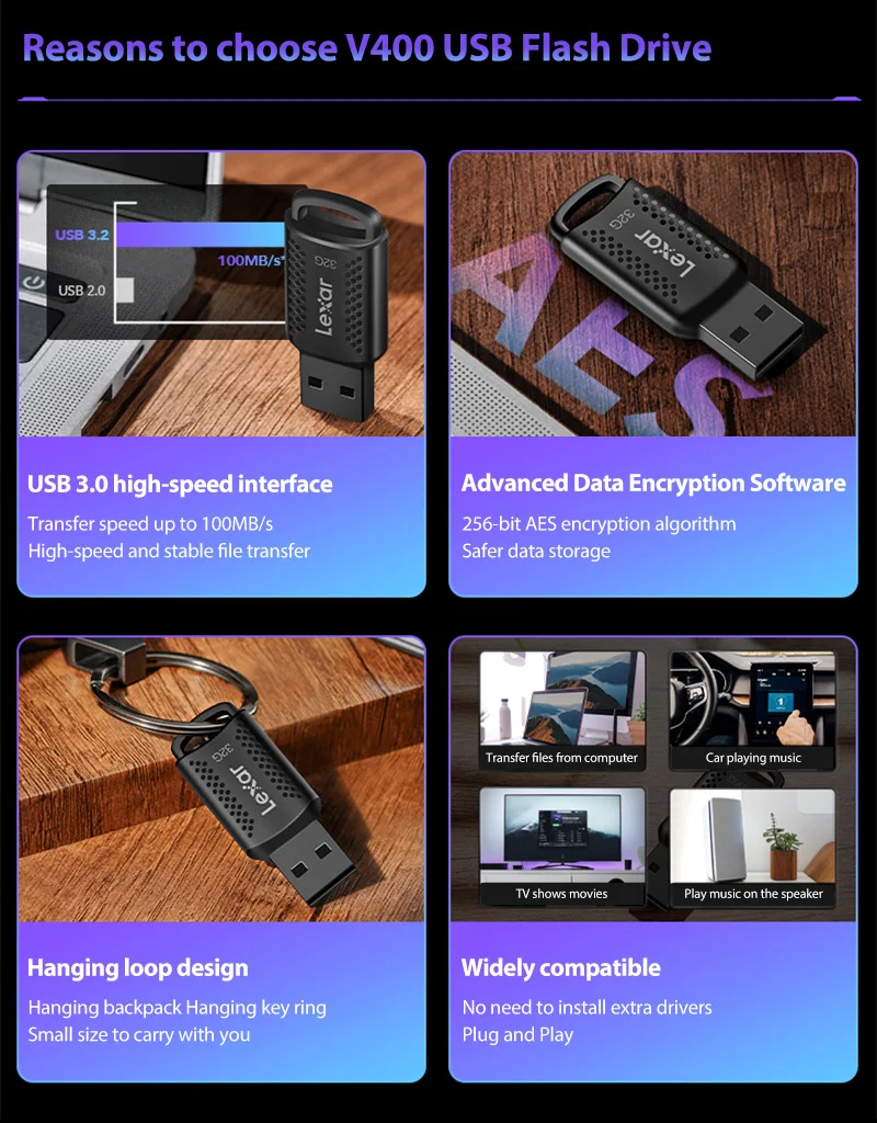 USB-флеш-накопитель Lexar V400, 32-100 ГБ