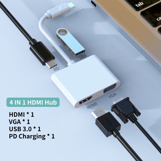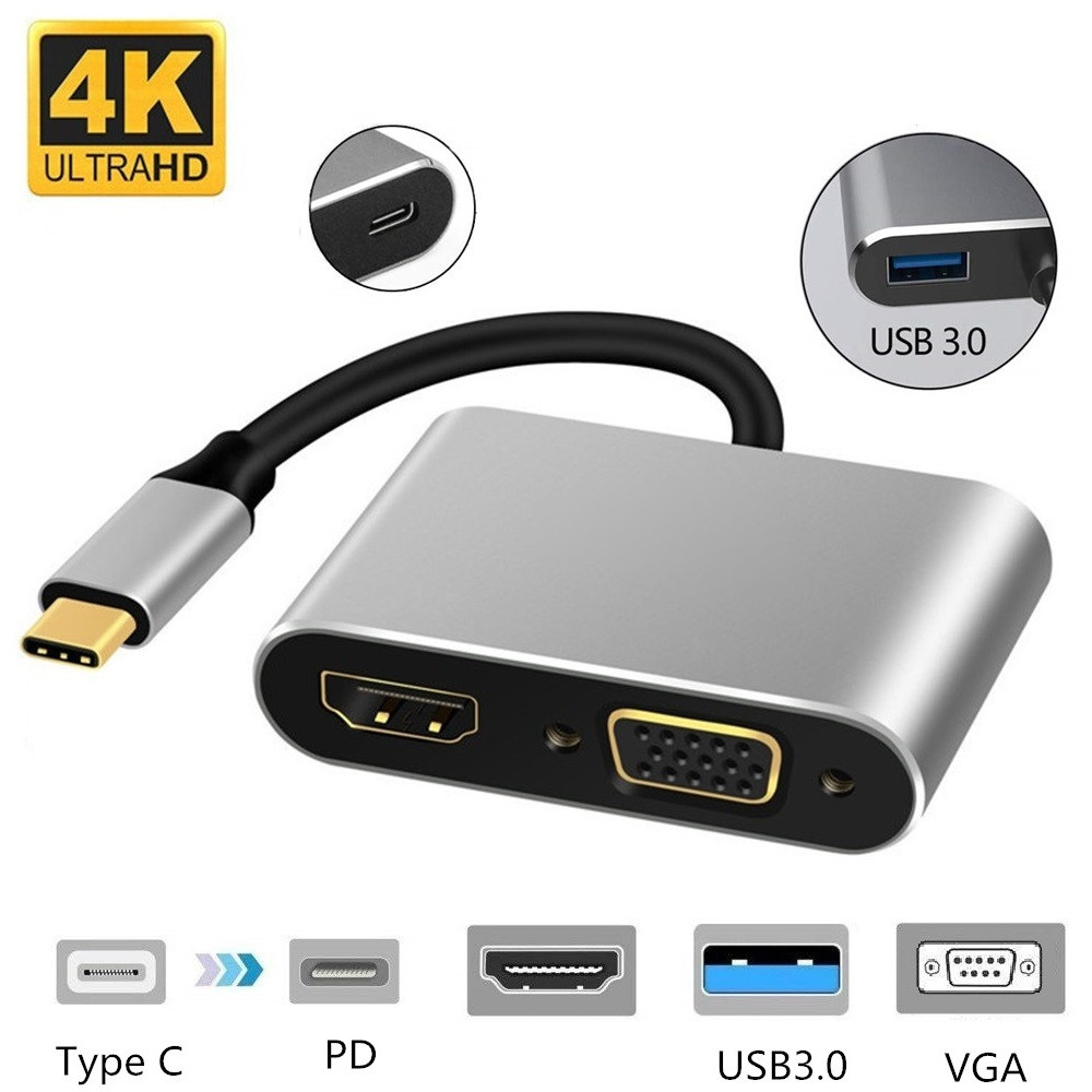 1 X концентратор VGA USB C 3,0, совместимый с Type-C-4K HDMI