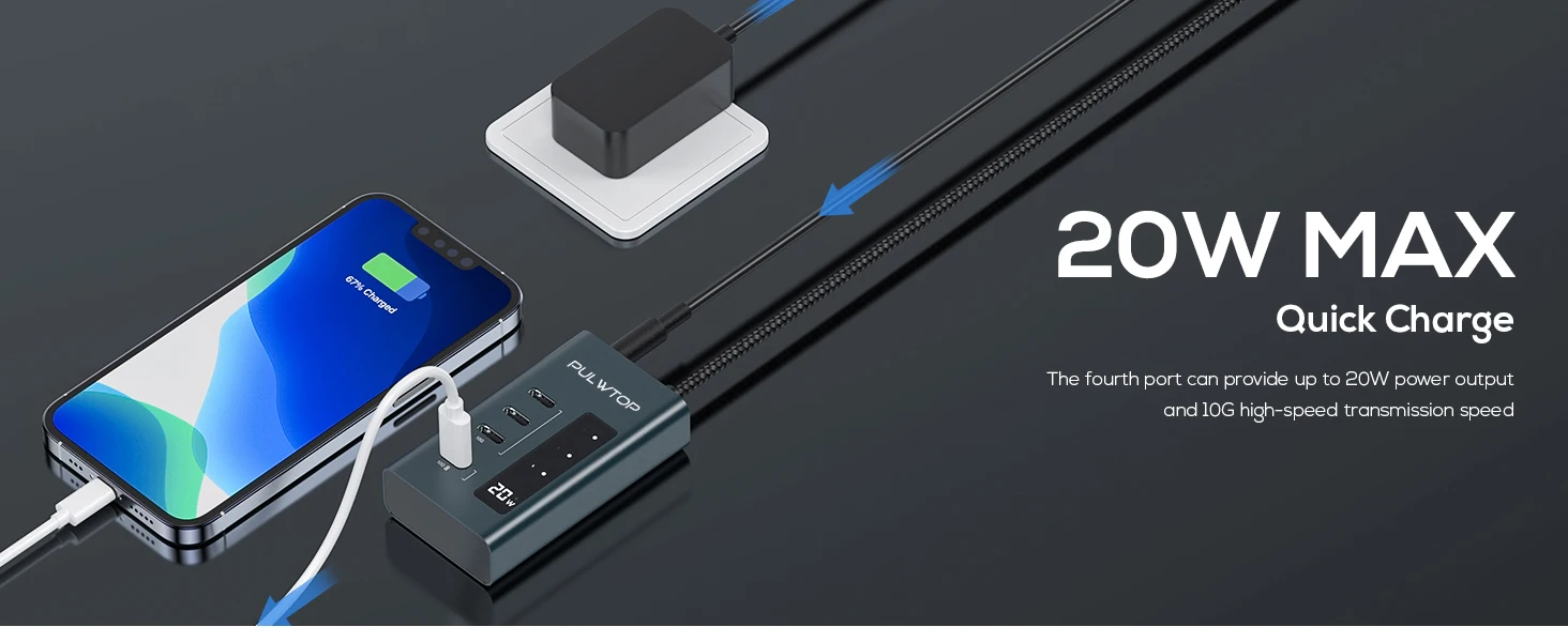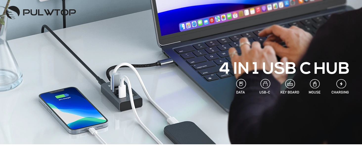 USB-концентратор PULWTOP 4 в 1, 10 Гбит/с, с поддержкой данных и зарядки