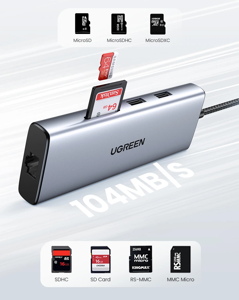 USB-концентратор UGREEN 4K 60 Гц Тип C к HDMI 2,0 RJ45 USB 3,0 PD 100 вт адаптер для Macbook Air Pro iPad Pro M1 аксессуары для ПК USB-концентратор
