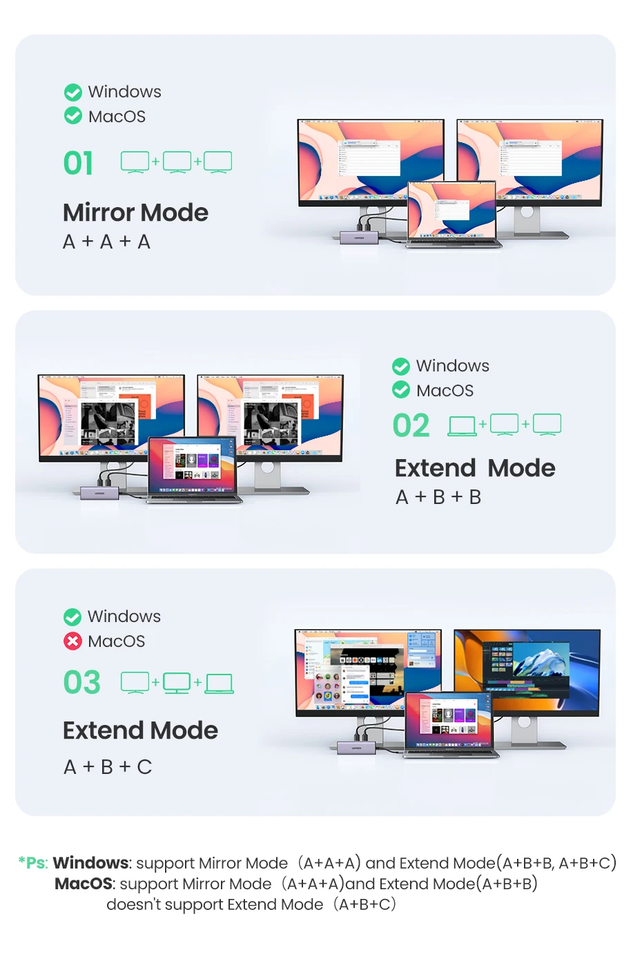 * Ps: Для Windows: при подключении к 2 дополнительным дисплеям Максимальное разрешение будет 4K60Hz + 4K30Hz