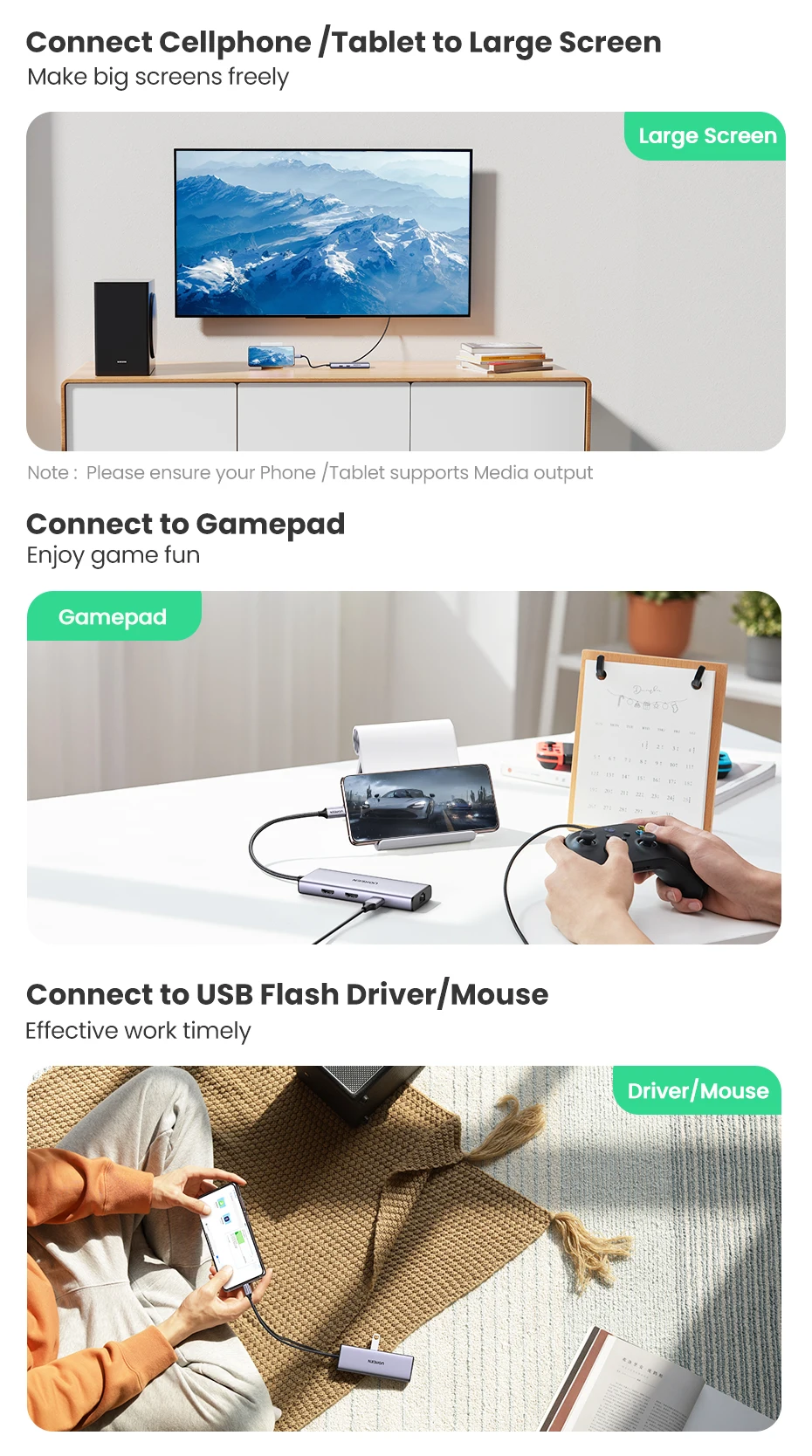И этот концентратор USB c можно применить к большинству ноутбуков. Если порт вашего устройства-версия DP1.2 (поддерживается 4K при 60 Гц), разрешение автоматически адаптируется к 4K при 30 Гц.