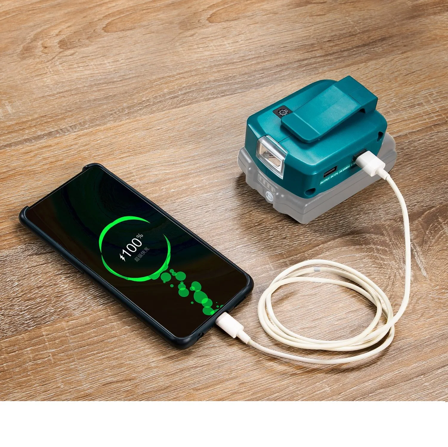 USB преобразователь, 14,4 В, 18 В, литийионный аккумулятор, двойной разъем USB, светодиодная подсветка, прожектор, фонарик, для аккумуляторов Makita