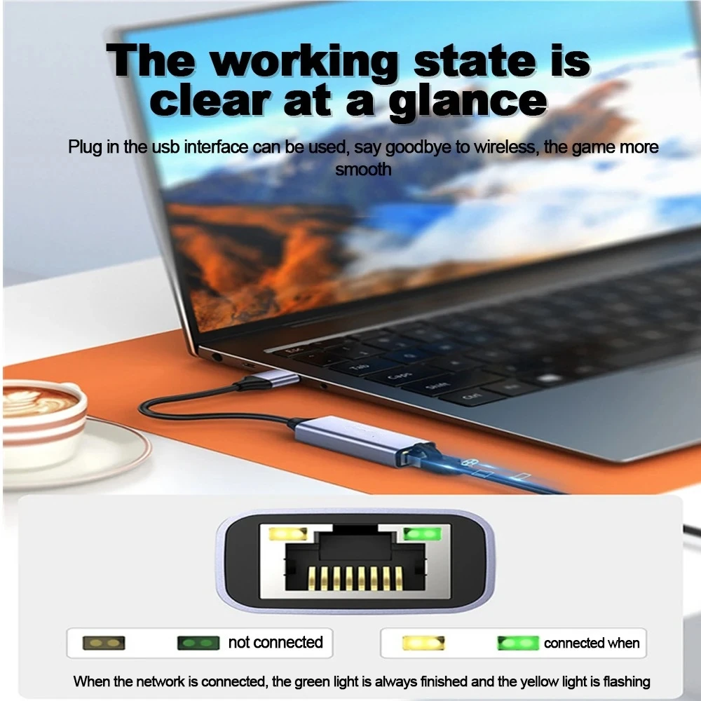 Гигабитный адаптер USB-Ethernet может достигать скорости передачи данных до 1000 Мбит/с, обеспечивая полную производительность вашей сети и обеспечивая стабильную скорость сети для онлайн-работы, встреч, классификации, игры, потоковое HD-видео, загрузка, загрузка и многое другое.