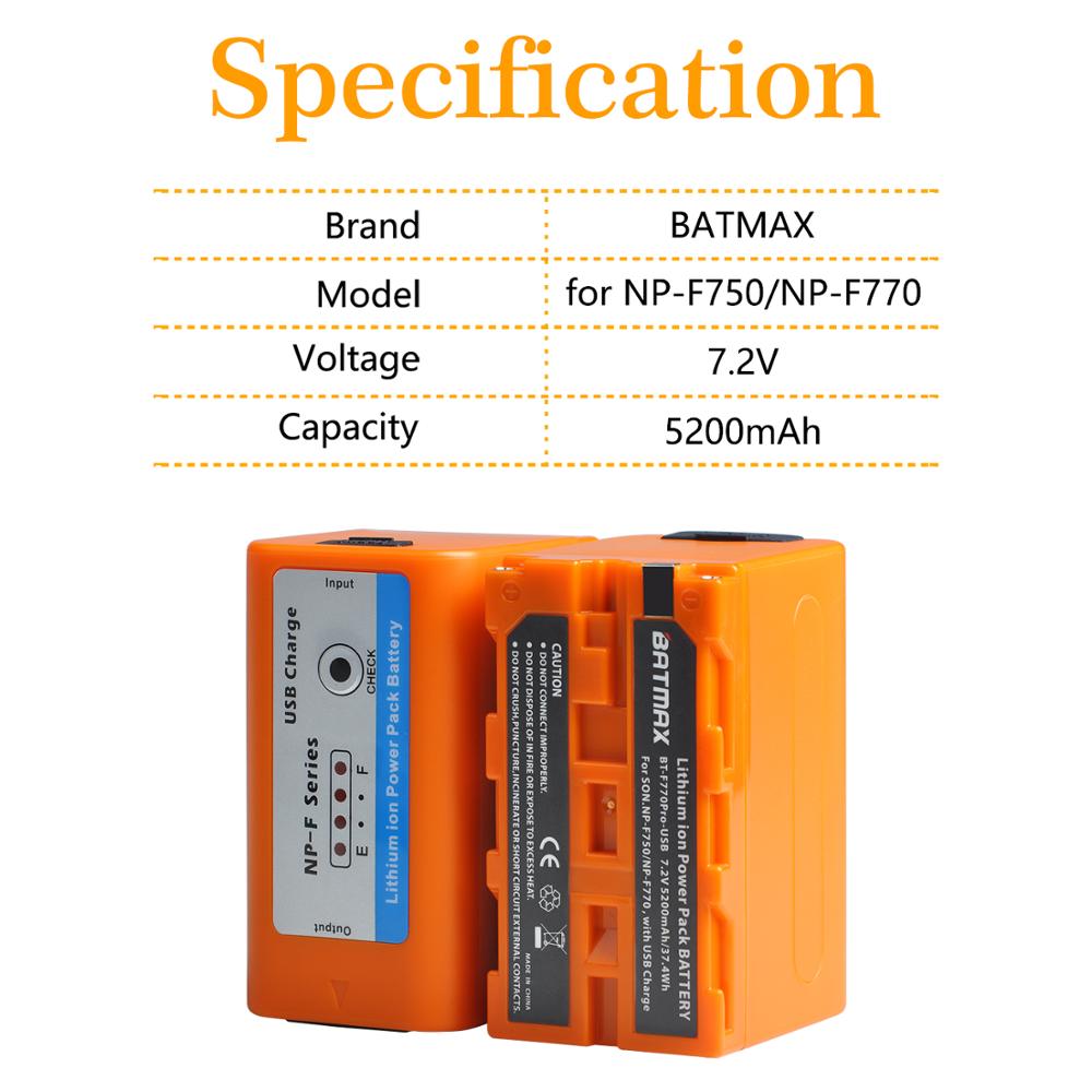 USB-выход 5200 мАч, аккумулятор F730 F770, светодиодный индикатор питания для Sony NP F960 F970
