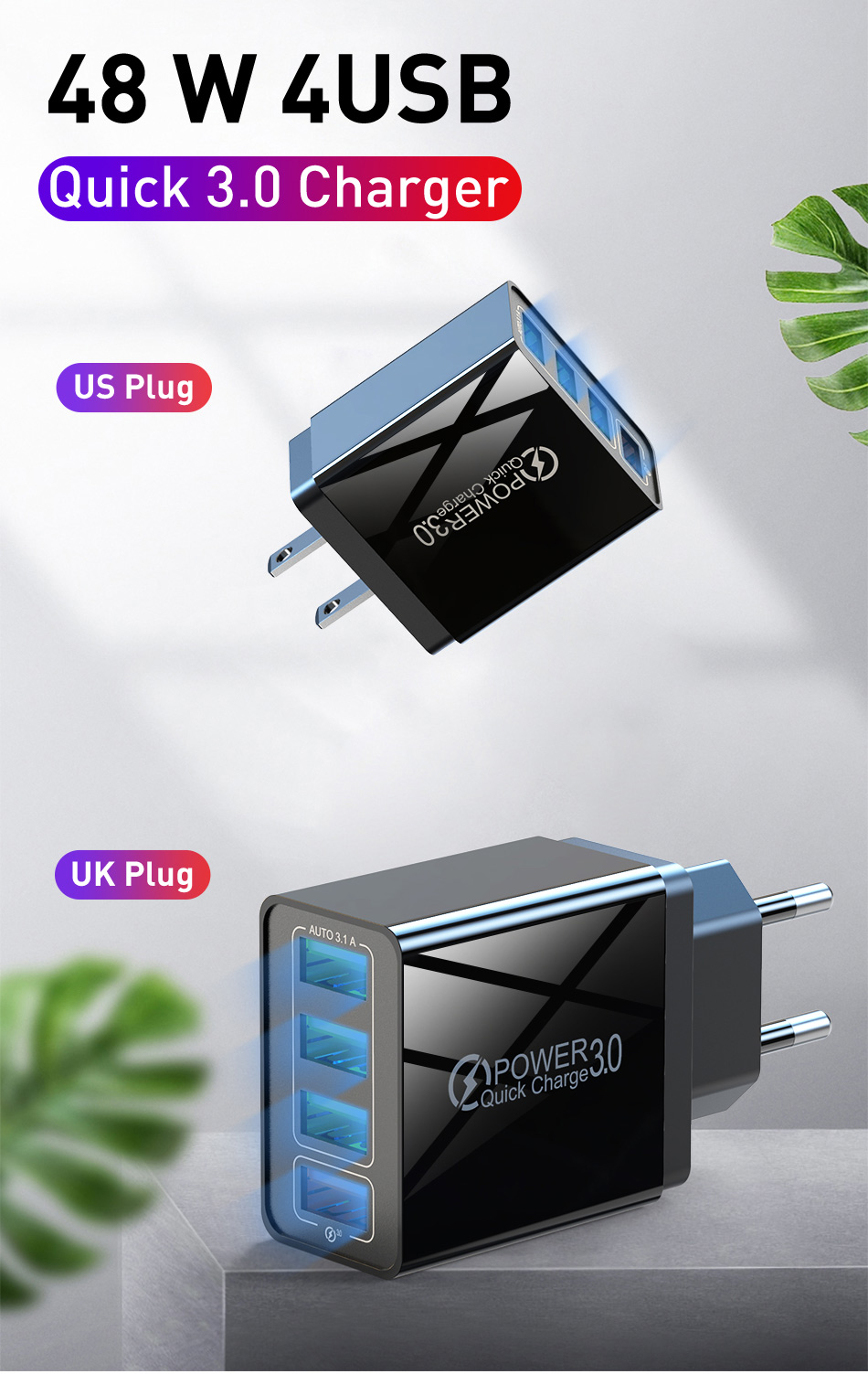 USB-зарядное устройство USLION 3,0 А для быстрой зарядки, 48 Вт