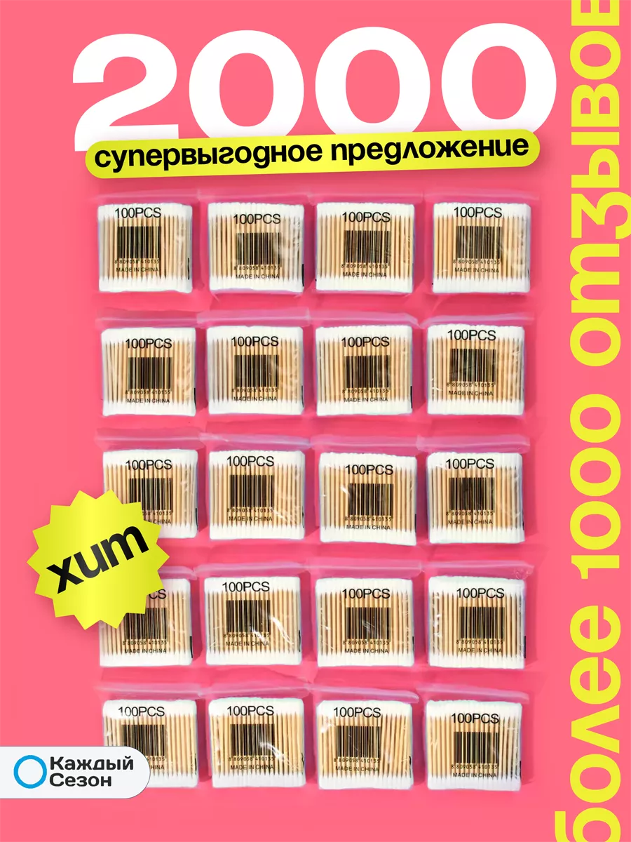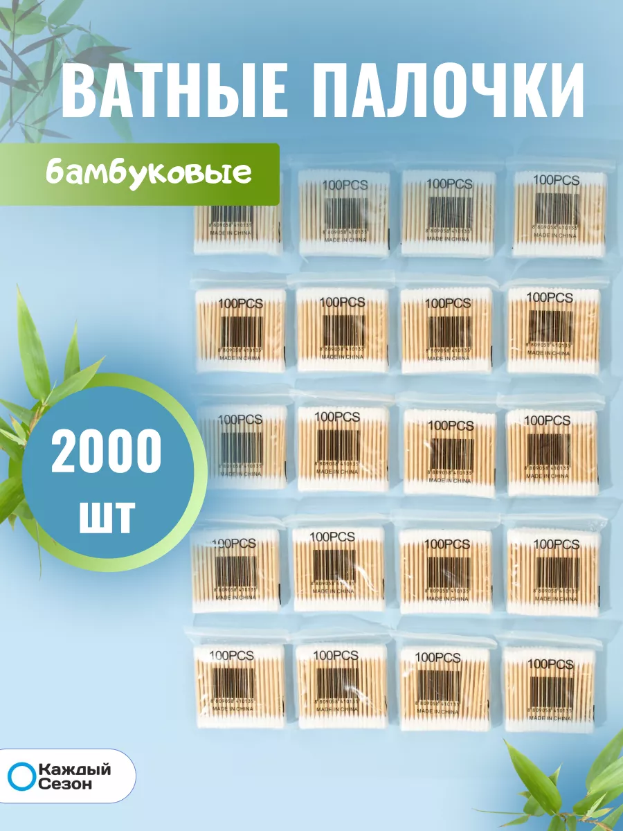 Ушные ватные палочки бамбук и хлопок 2000 штук