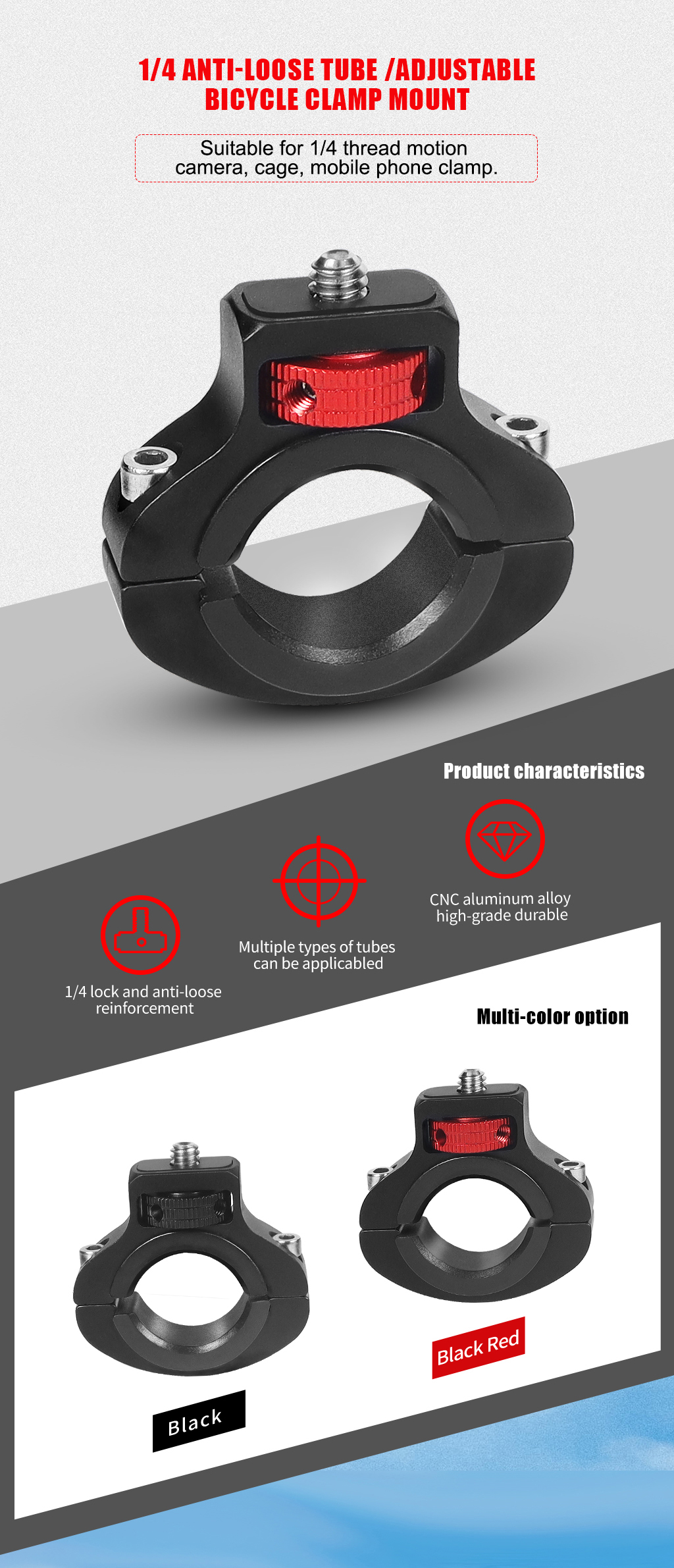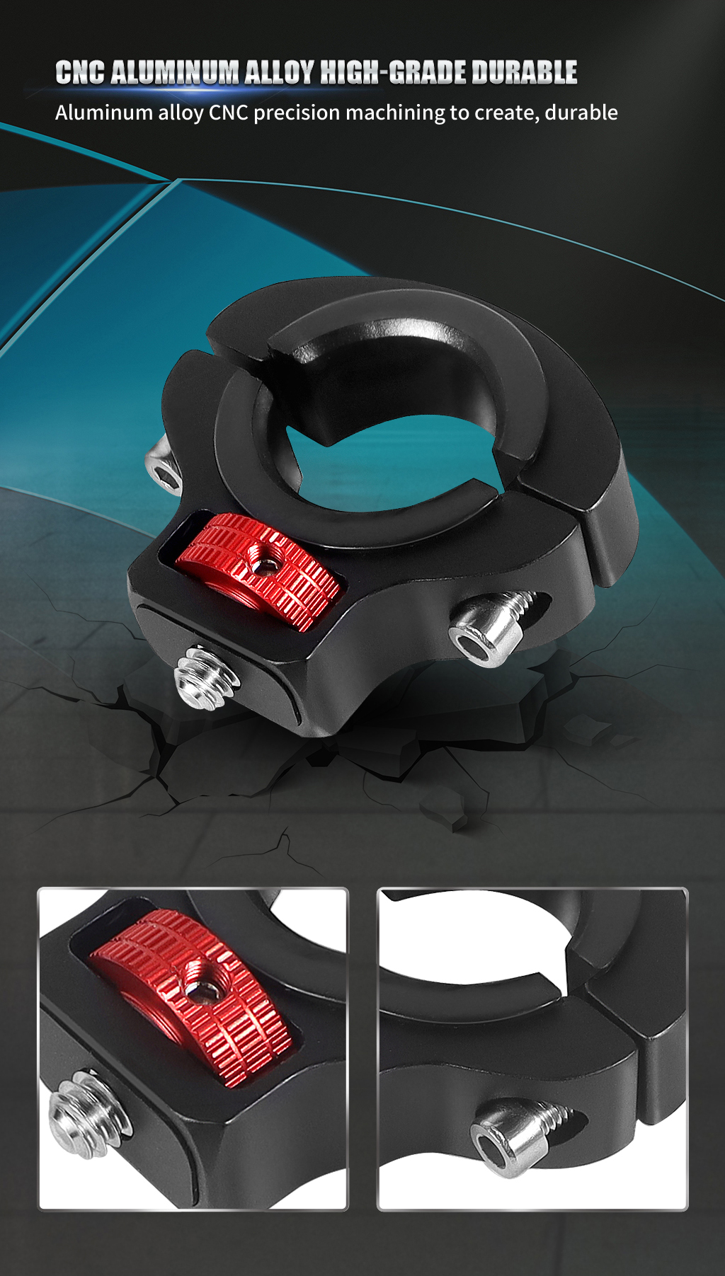 Конструкция зажима обеспечивает плотное и надежное прилегание к рулю, предотвращая раскачивание или тряску во время езды. Благодаря усиленной блокировке вращающегося диска блокировку можно использовать для вторичного армирования гаечным ключом, его надежный захват гарантирует, что ваша камера останется на месте независимо от того, насколько неровная поездка.