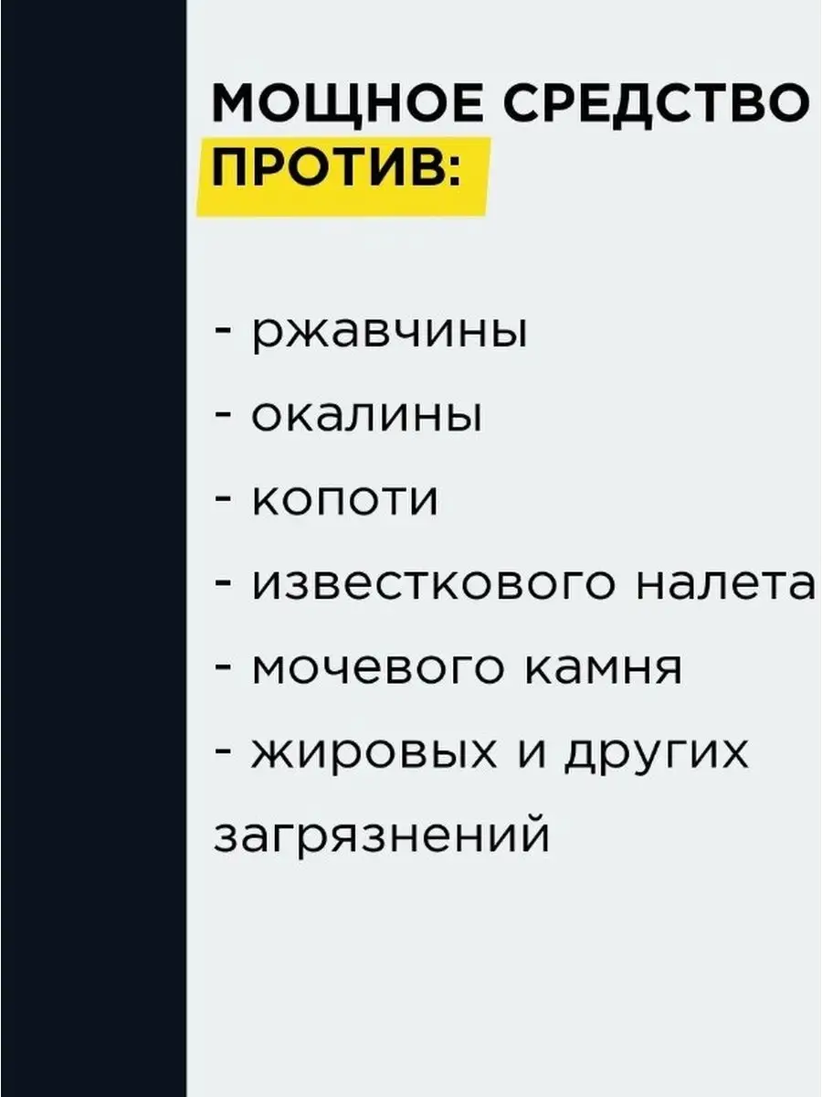 Эффект средства удаление налета и ржавчины; отбеливание и блеск; антибактериальная обработка