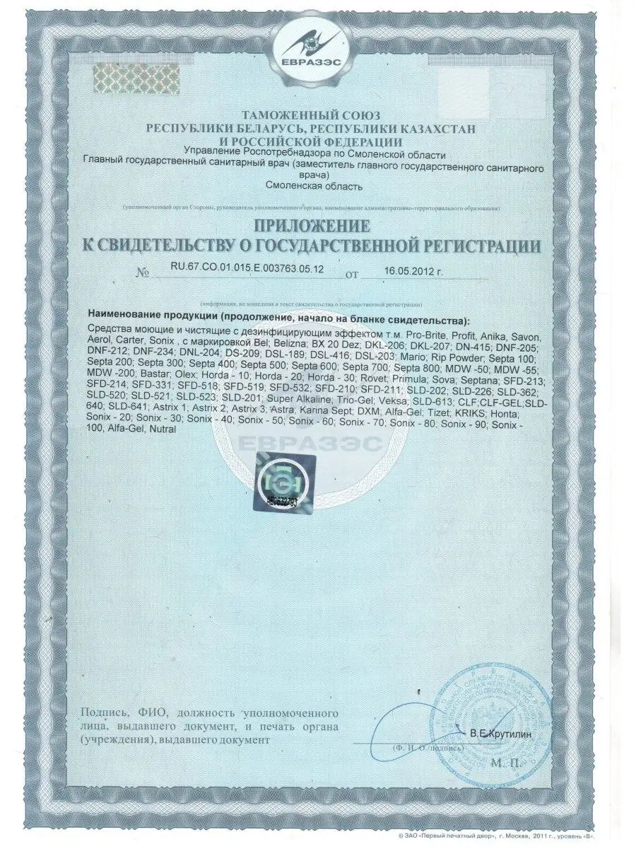 Описание: Alfa gel- усиленный гель против ржавчины, окалины копоти серы известкового налёта водного, мочевого и котлового камня, цемента и растворов на его основе, строительных замазок, жировых и др. загрязнений на кафеле керамике нержавеющей стали, стёклах и др. кислотостойких поверхностях. Универсальный утенок туалетный предназначен для чистки унитазов, писсуаров раковин ванн, душевых кабин и др. Применим для уборки после строительства и ремонта. Альфагель -гелеобразный сильнокислотный низкопенный, готовый к применению преобразователь ржавчины, полупрозрачный оранжевого цвета с ароматом морской свежести. Обладает бактерицидными свойствами. Удаляет неприятные запахи. Рекомендуется проветривание в помещении во время использования Альфагеля. Бытовая химия на основе кислоты как Alfa-gel Pro-Brite не подходит для акриловых ванн, хромированных поверхностей. Будьте внимательны при использовании профессиональной линейки продуктов, пользуйтесь инструкцией.