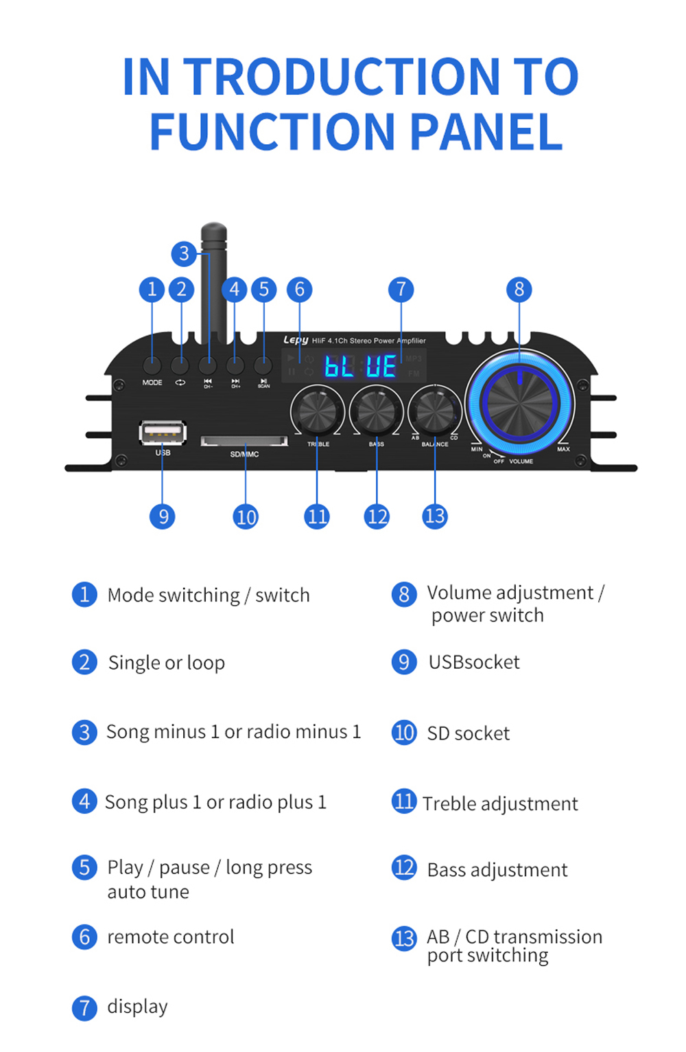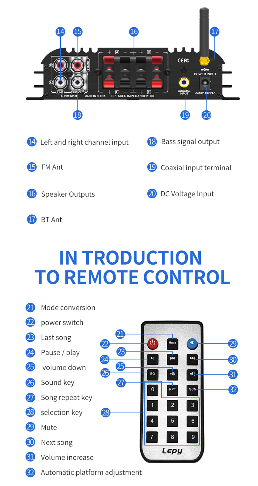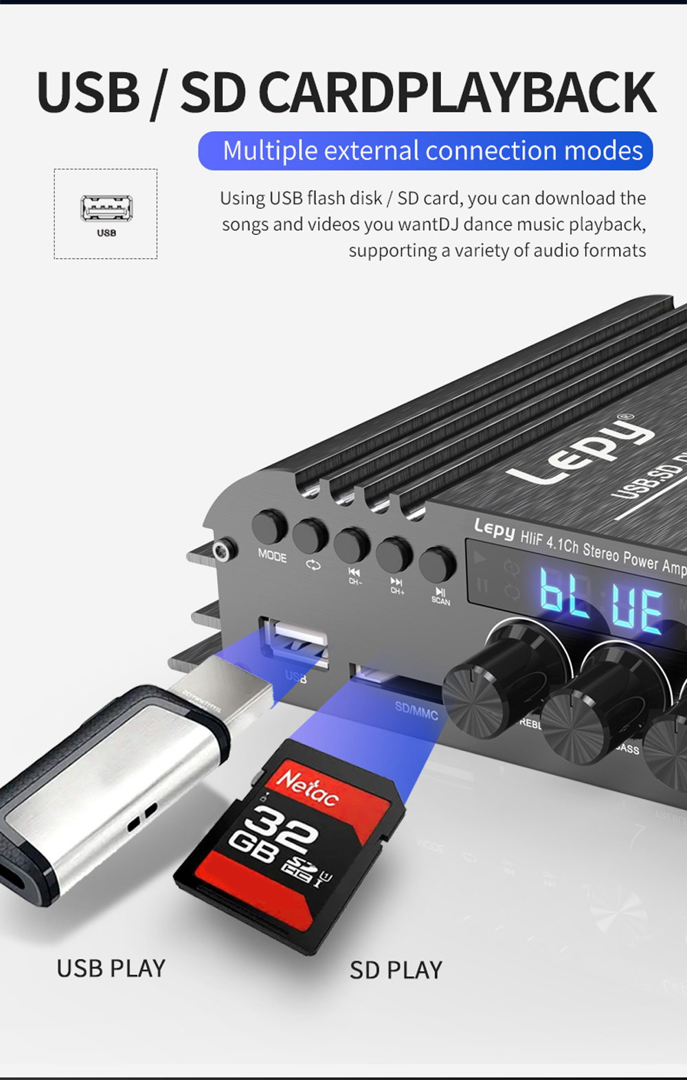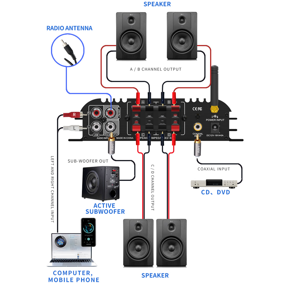 Усилитель для домашнего кинотеатра Woopker, 4,1 каналов, Bluetooth 5,0, коаксиальный, USB, SD, FM