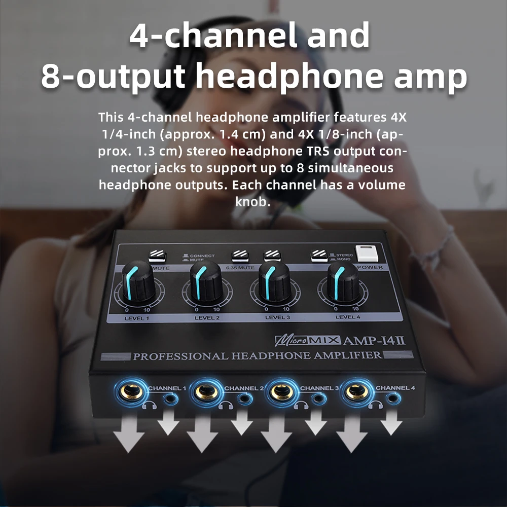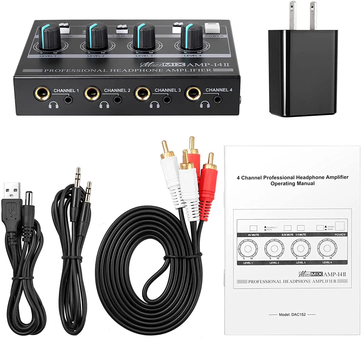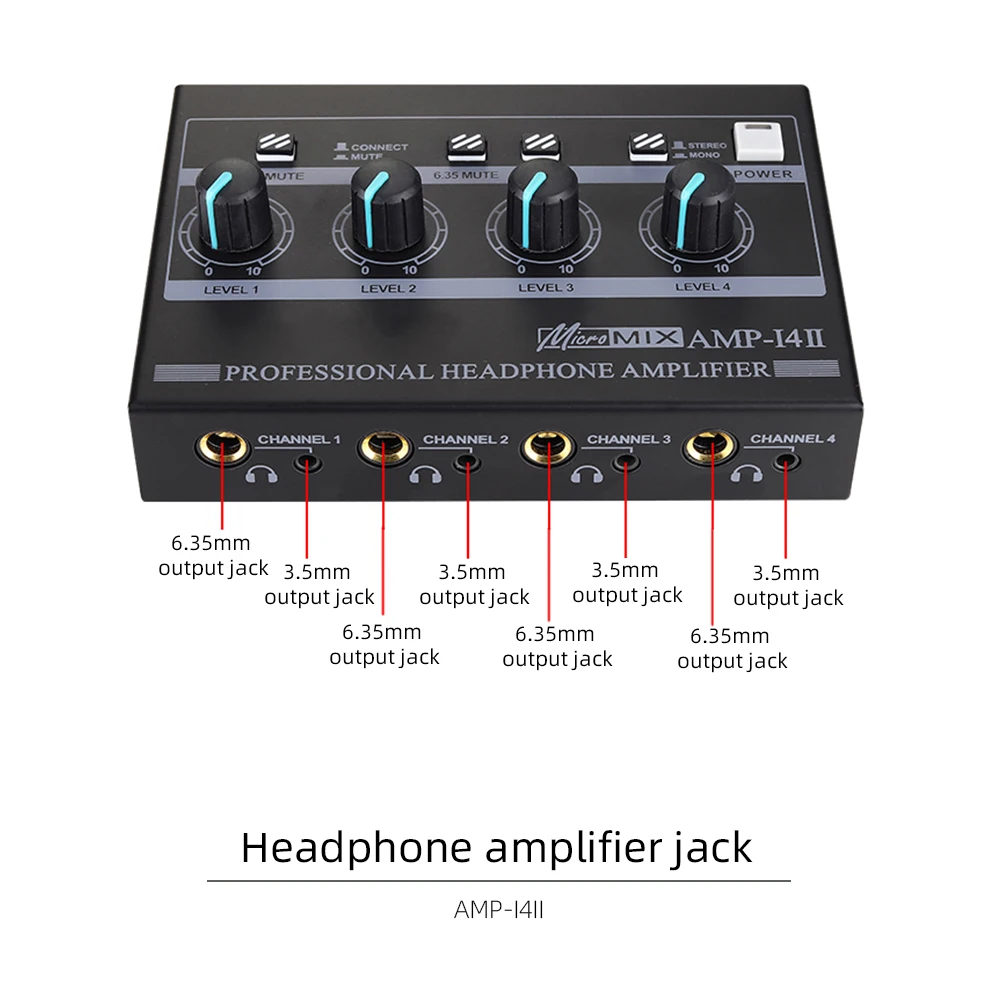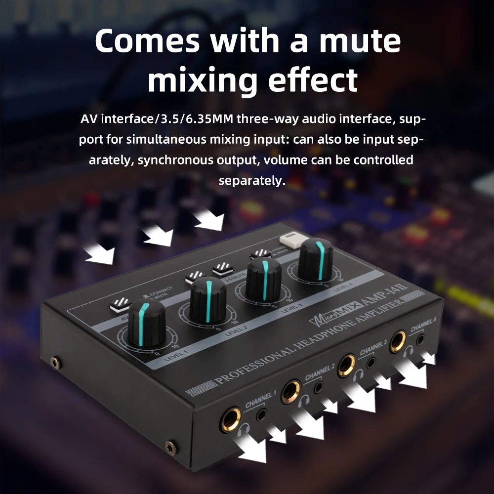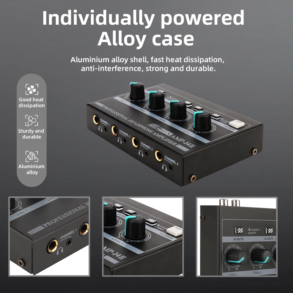 Усилитель для наушников 4-канальный моно/стерео монитор из ферросплава AMP-i4 (100-240 В) Заряжаемый усилитель для наушников