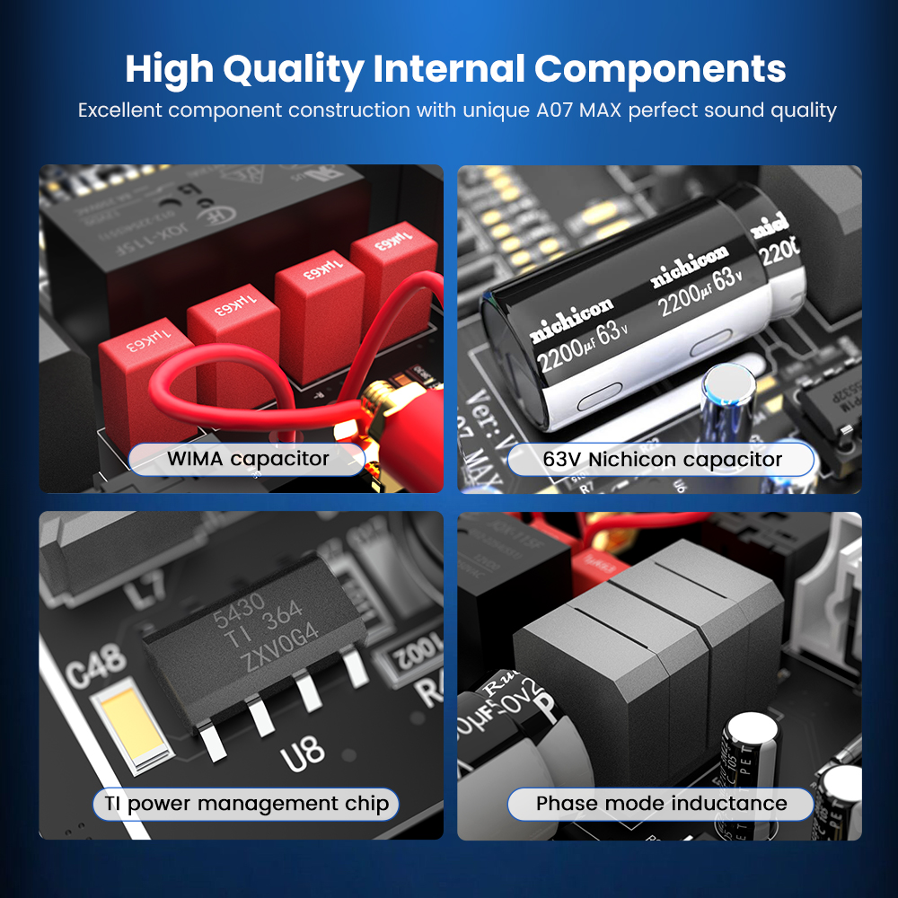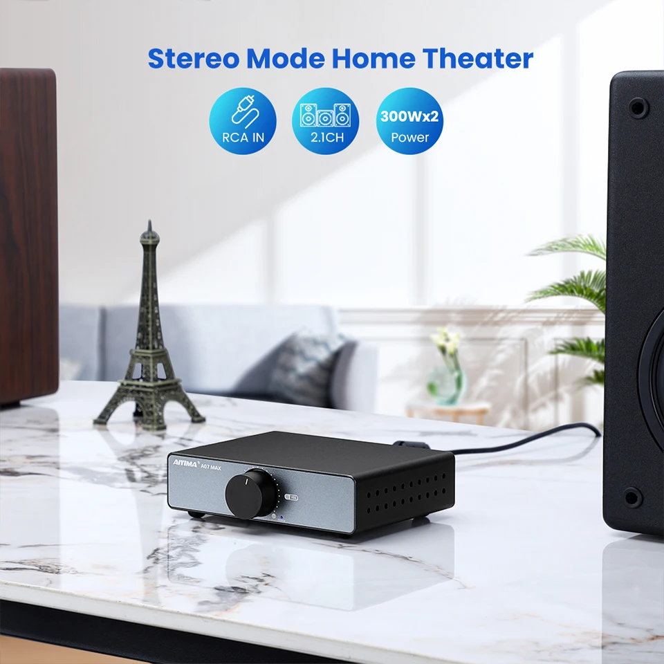 AIYIMA продолжает внедрять инновации и улучшать, использовать лучшие профессиональные аудиокомпоненты, сосредоточиться на аудио Hifi, чтобы удовлетворить ваши потребности в качестве звука и функциях продукта, это уникальный инновационный дизайн, различное использование Типы функций A07 MAX можно свободно переключать, одно устройство имеет Многофункциональность, одно AIYIMA A07 MAX, это равно мостовой моно стерео усилитель 600 Вт/300 Вт + 300 Вт 2-канальный усилитель/2,1 стерео Усилитель