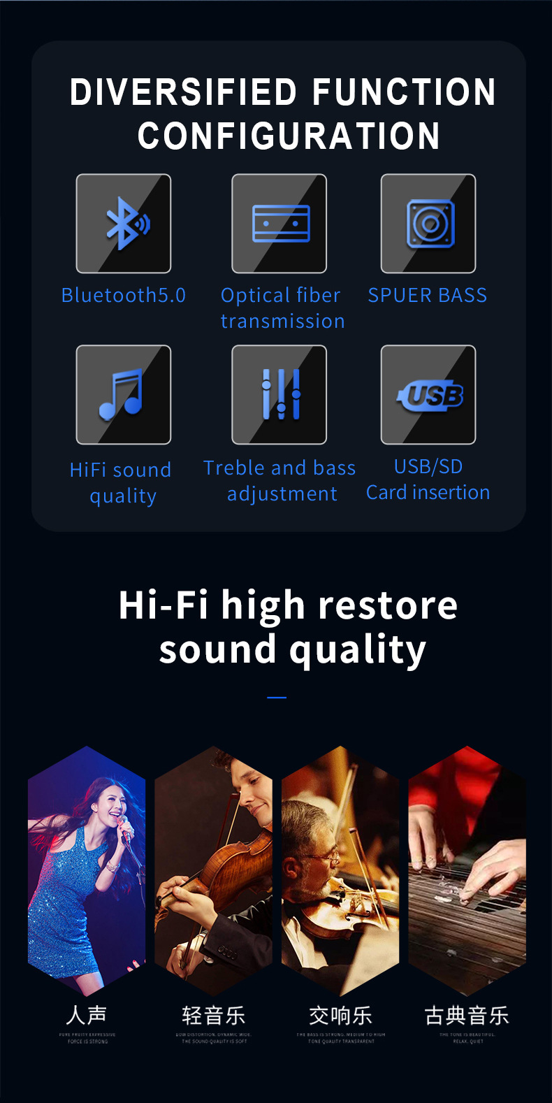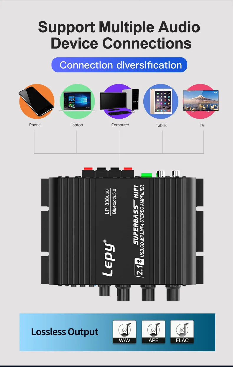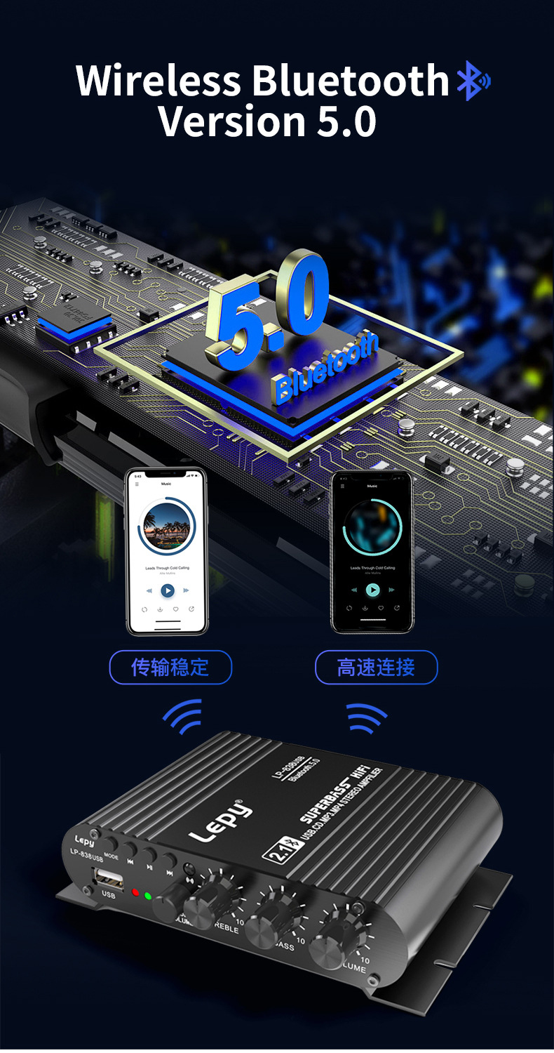 Bluetooth 5,0 \ 2,1 канал \ USB воспроизведение музыки без потерь