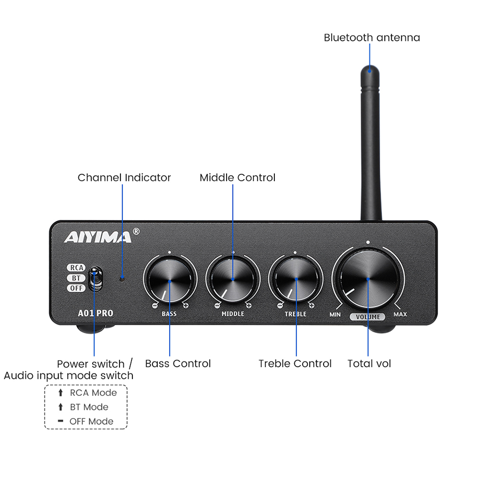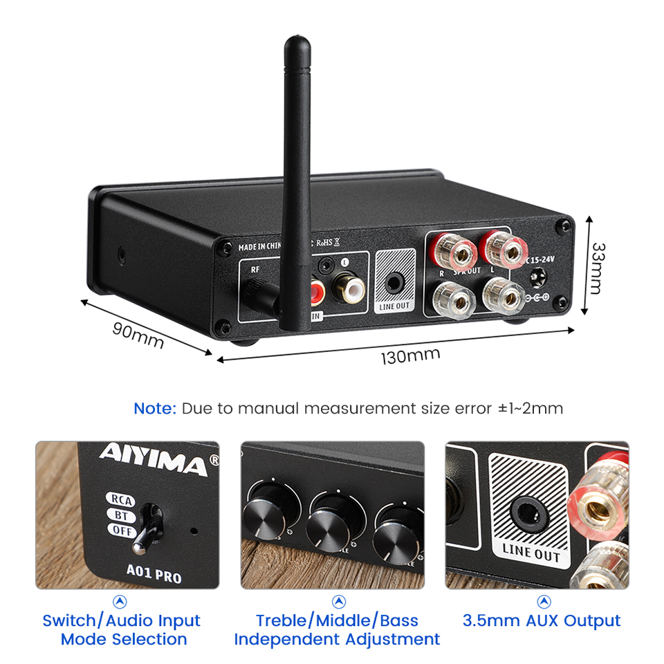 Усилитель мощности AIYIMA A01 PRO Bluetooth TPA3116D2, Hi-Fi усилитель звука 100 Вт, стерео класс D, домашний кинотеатр, усилитель басов, высокие частоты