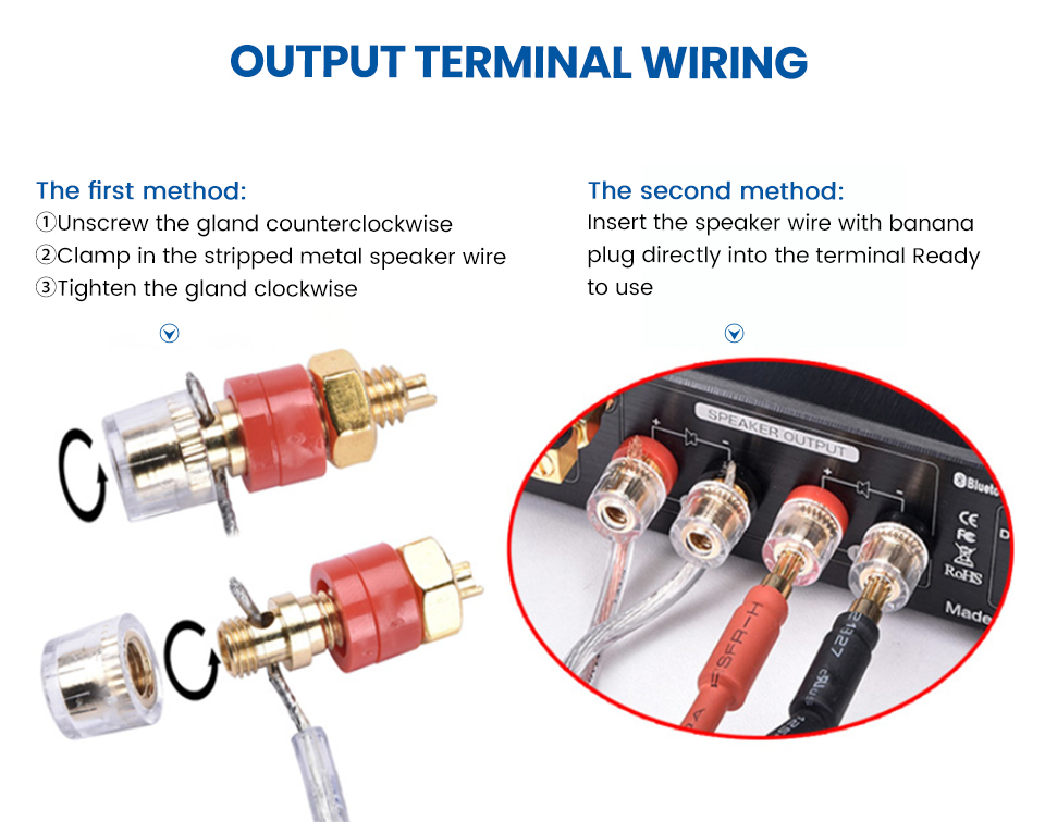 1.With two audio inputs, one AUX input is convenient to connect to traditional wired analog signal inputs; there is also one Bluetooth wireless input, which can be easily connected to Bluetooth devices such as mobile phones and computers, without being bound by wires, and easily enjoy music.