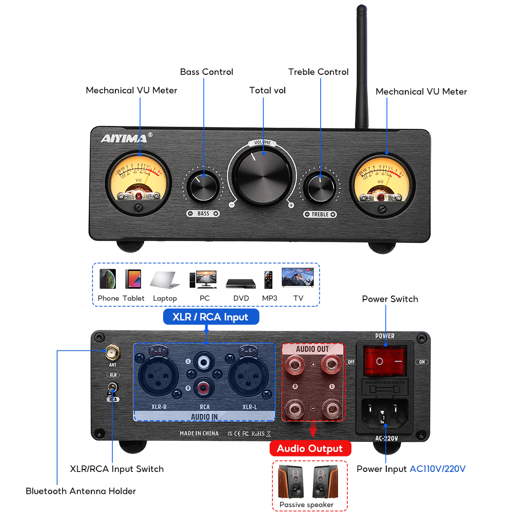 Аудиовход: RCA, XLR, Bluetooth