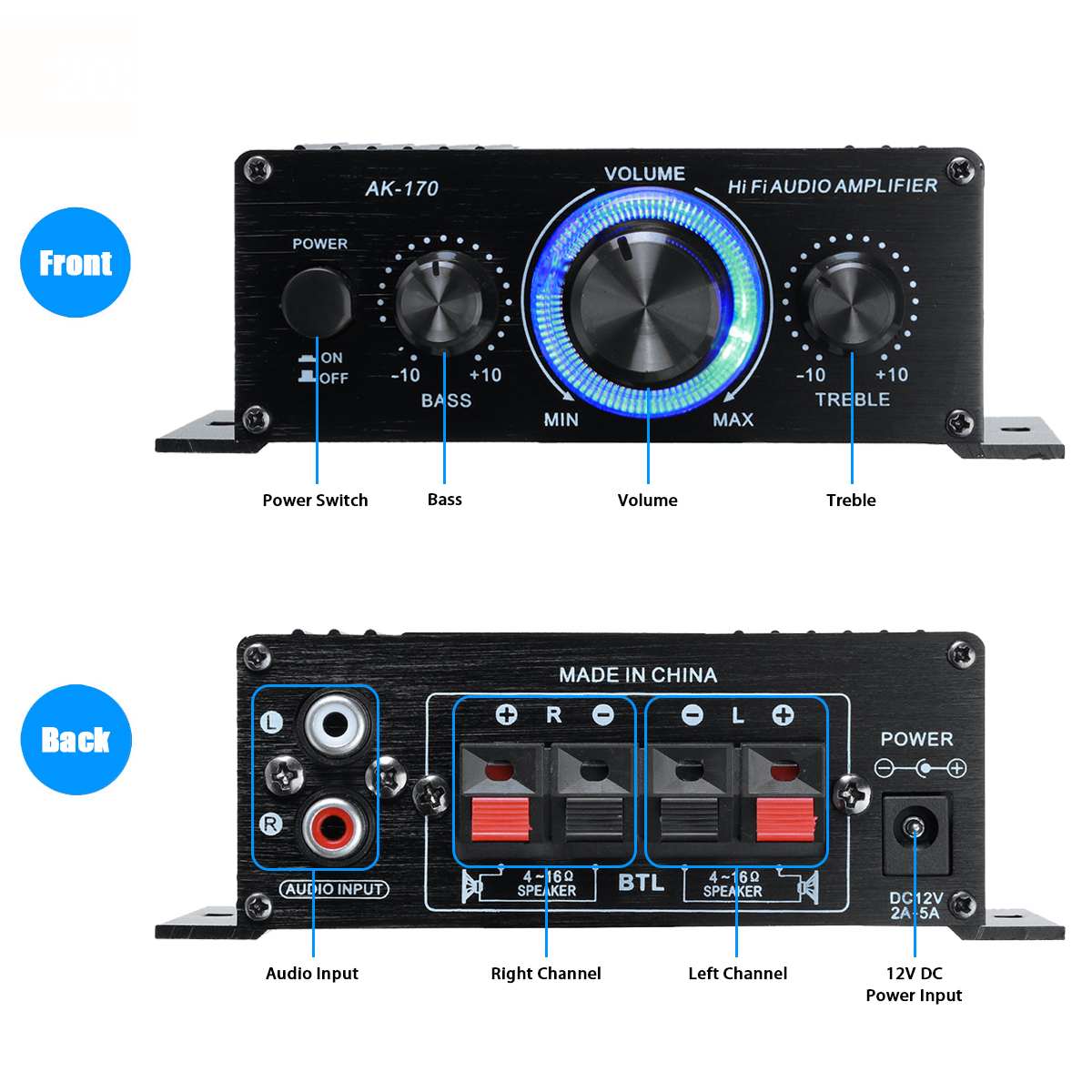 Усилитель мощности AK35 AK380/AK170, Bluetooth класса D, аудио, караоке, домашний кинотеатр, 2-канальный, USB/SD, AUX вход