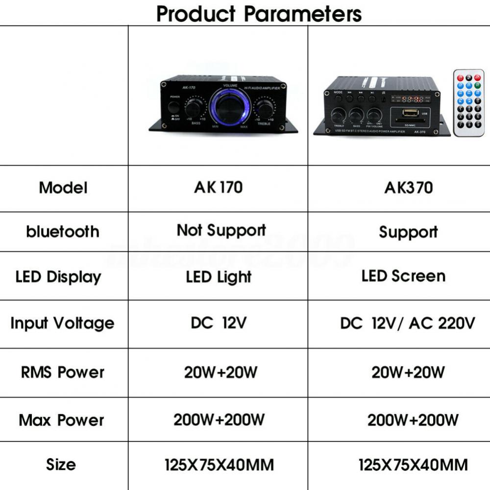 AK370 Усилитель мощности двухканальный подключаемый цифровой усилитель TF-карты Автомобильный музыкальный динамик домашний аудио усилитель USB/SD вход AUX