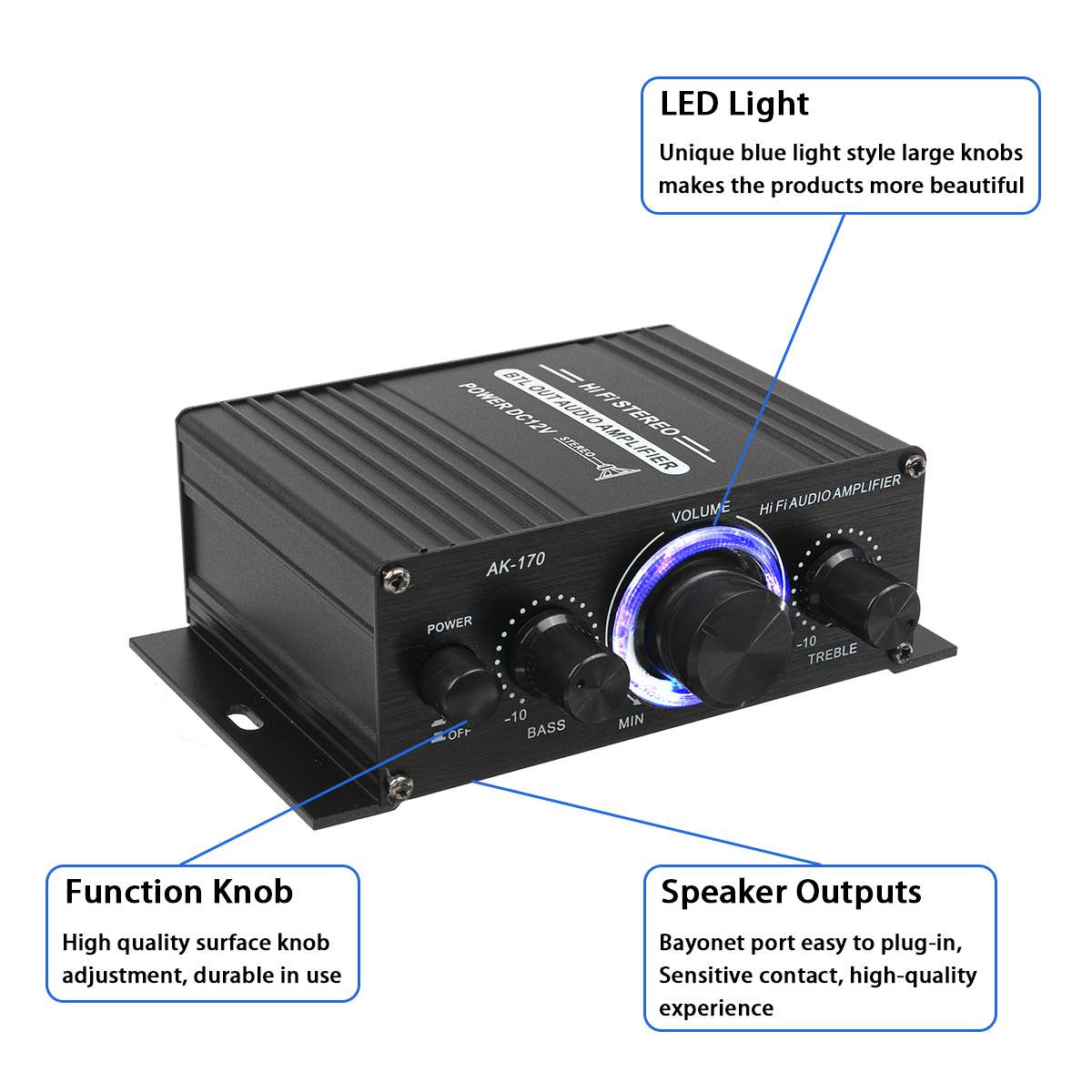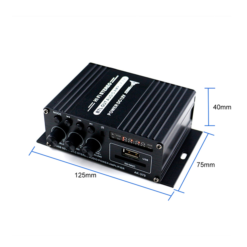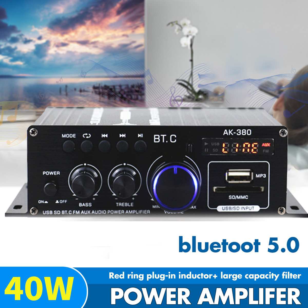 Усилитель мощности AK380/AK370, усилитель аудиосигнала для караоке, домашнего кинотеатра, 2 канала, Bluetooth, класс D, FM, USB/SD, AUX вход