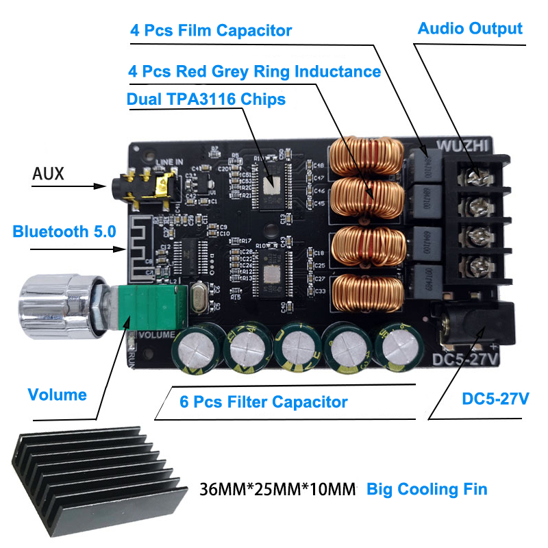 Название продукта: двухканальный TPA3116 Bluetooth 5,0 усилитель мощности