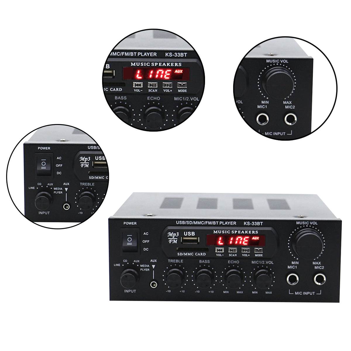 -Отдельные регуляторы громкости, тембра и микрофонов