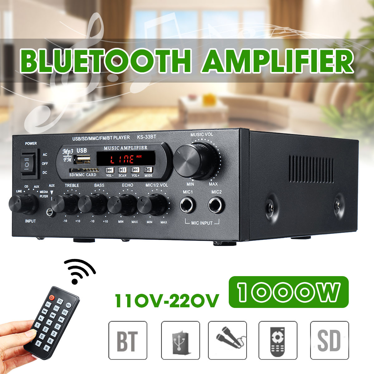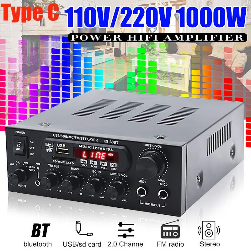 Усилитель мощности для домашнего кинотеатра, 1000 Вт, 800 Вт, 600 Вт, 220 В, bluetooth, FM, USB