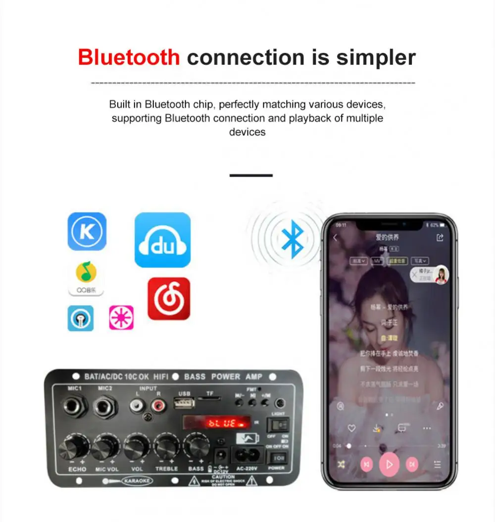 Цифровой Двойной микрофонный караоке-усилитель Усилитель мощности 30-120 Вт Поддержка Tf/SD Стерео Усилитель Usb Upgrade