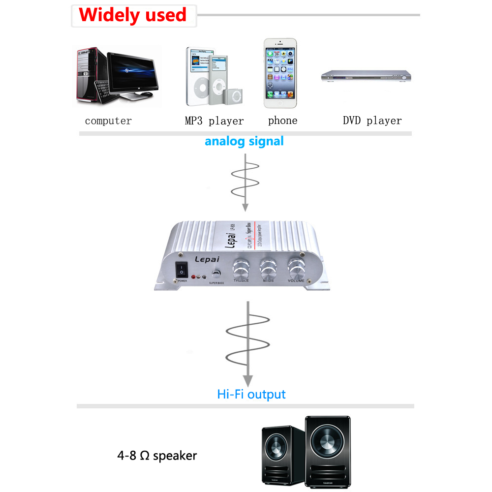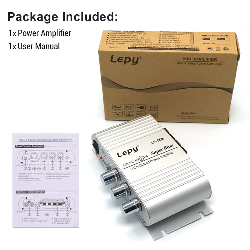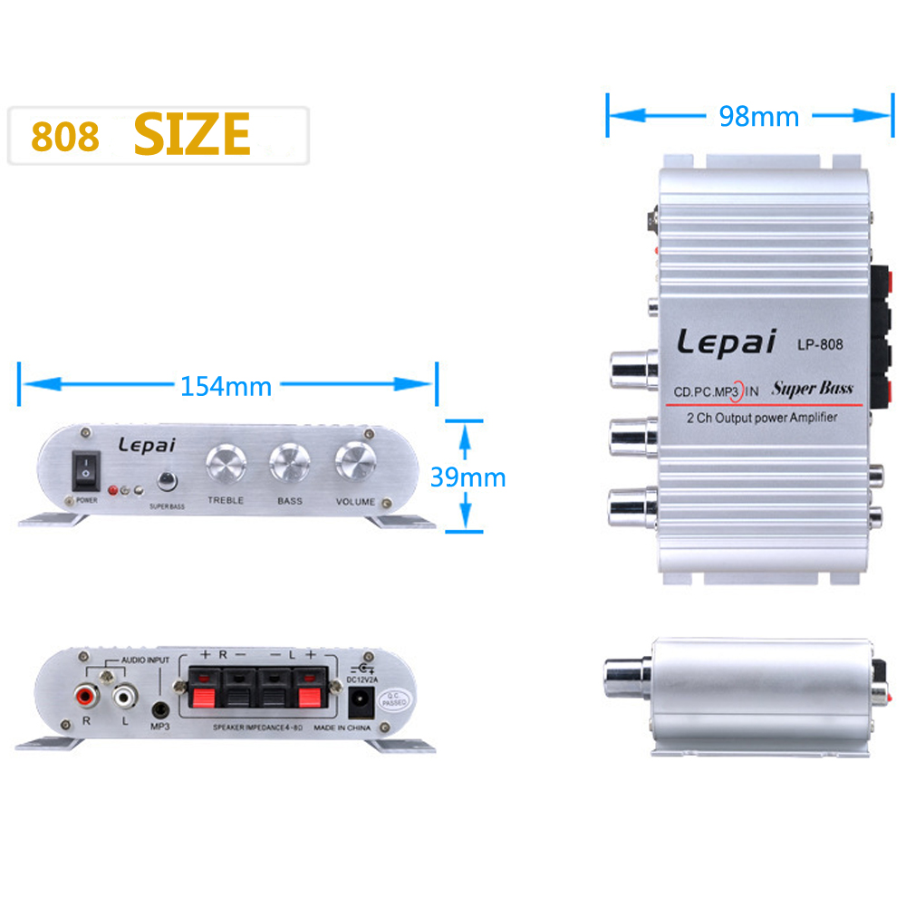 Усилитель мощности Lepy lp-808 HIFI, высококачественный вход/выход RCA, RMS 20 Вт * 2, высокий/низкий/баланс/Регулировка громкости, подходит для MP3, MP4