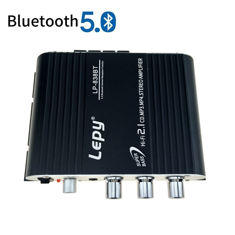 Усилитель мощности Lepy LP-838BT, Bluetooth 5.0, 2,1, 3 канала, Супер басы, аудио, усилитель звука с мощностью 12 В, 3 А и кабелем AUX