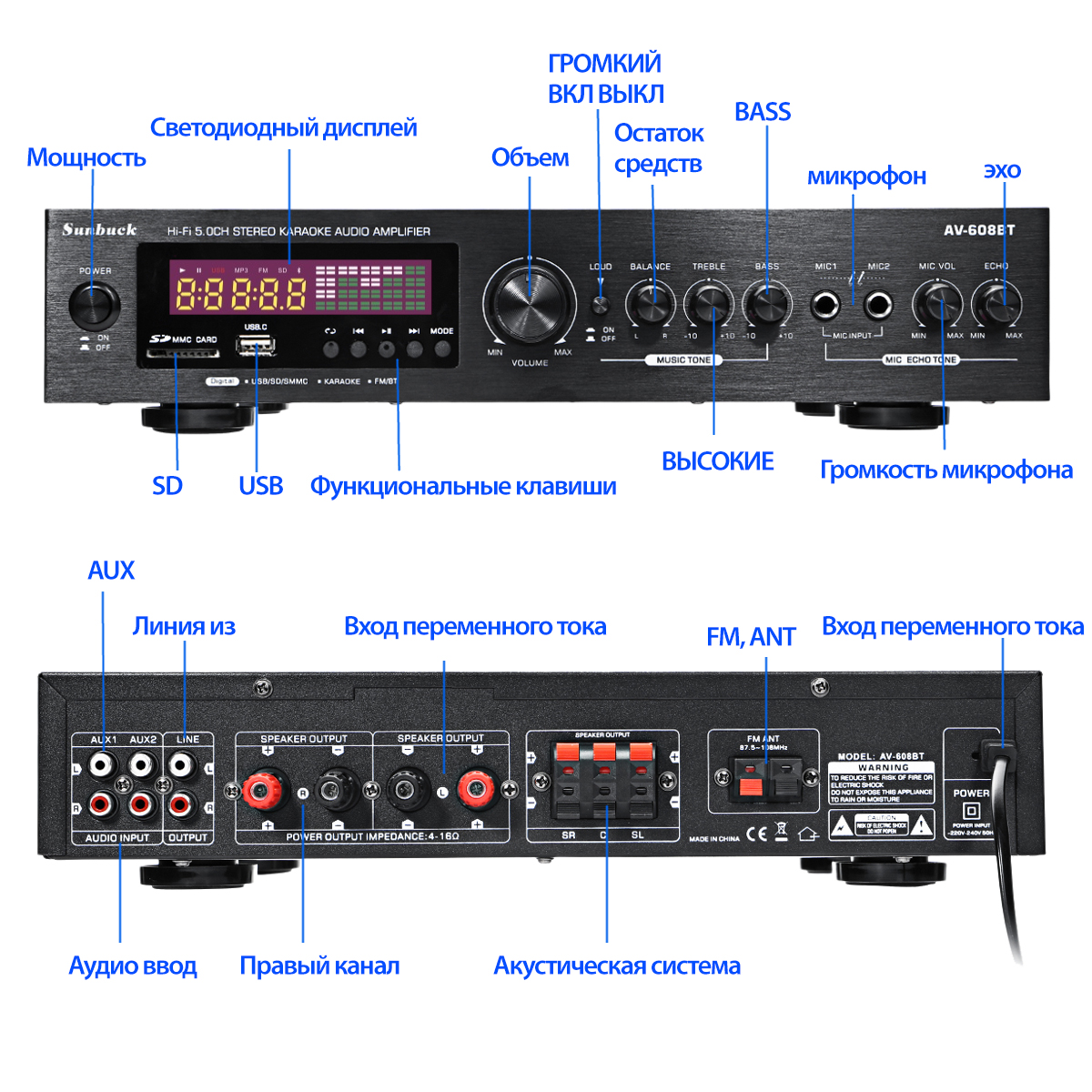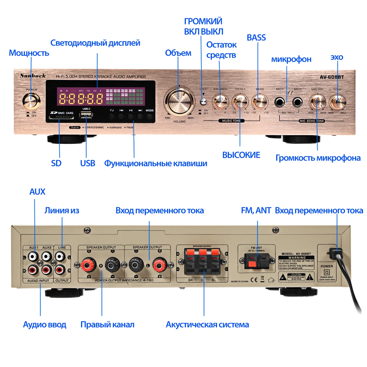Усилитель мощности звука 2000 Вт, 220 В, 110 В