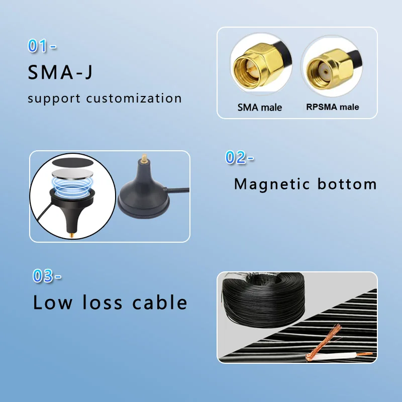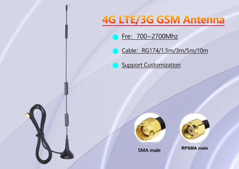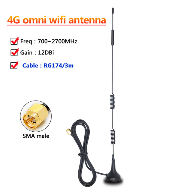 <span class="SnowProductCharacteristics_SnowProductCharacteristicsItem__titleContent__534v9">Antenna Name</span> TS9 SMA RPSMA 4G LTE 3G GSM 698~2700Mhz Omni WiFi Antenna High Gain 12dbi indoor outdoor Router Antenna With Magnetic Base