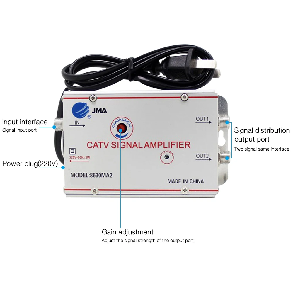 Этот усилитель Подходит для: аналогового сигнала кабельного телевидения (замкнутого контура), цифрового сигнала кабельного телевидения (STB, который не поддерживает интерактивную функцию по требованию), сигнала DTMB, наружный антенный сигнал (Внутренняя антенна и спутниковый горшок недоступны). Обычно, когда на изображении телевизора есть снежинки дома или когда STB наблюдает, изображение появляется мозаикой, усилитель добавляется, но обратите внимание, что усилители не являются всесезонными. Эффект будет отличаться в разных ситуациях. Все наши продукты будут протестированы и доставлены.