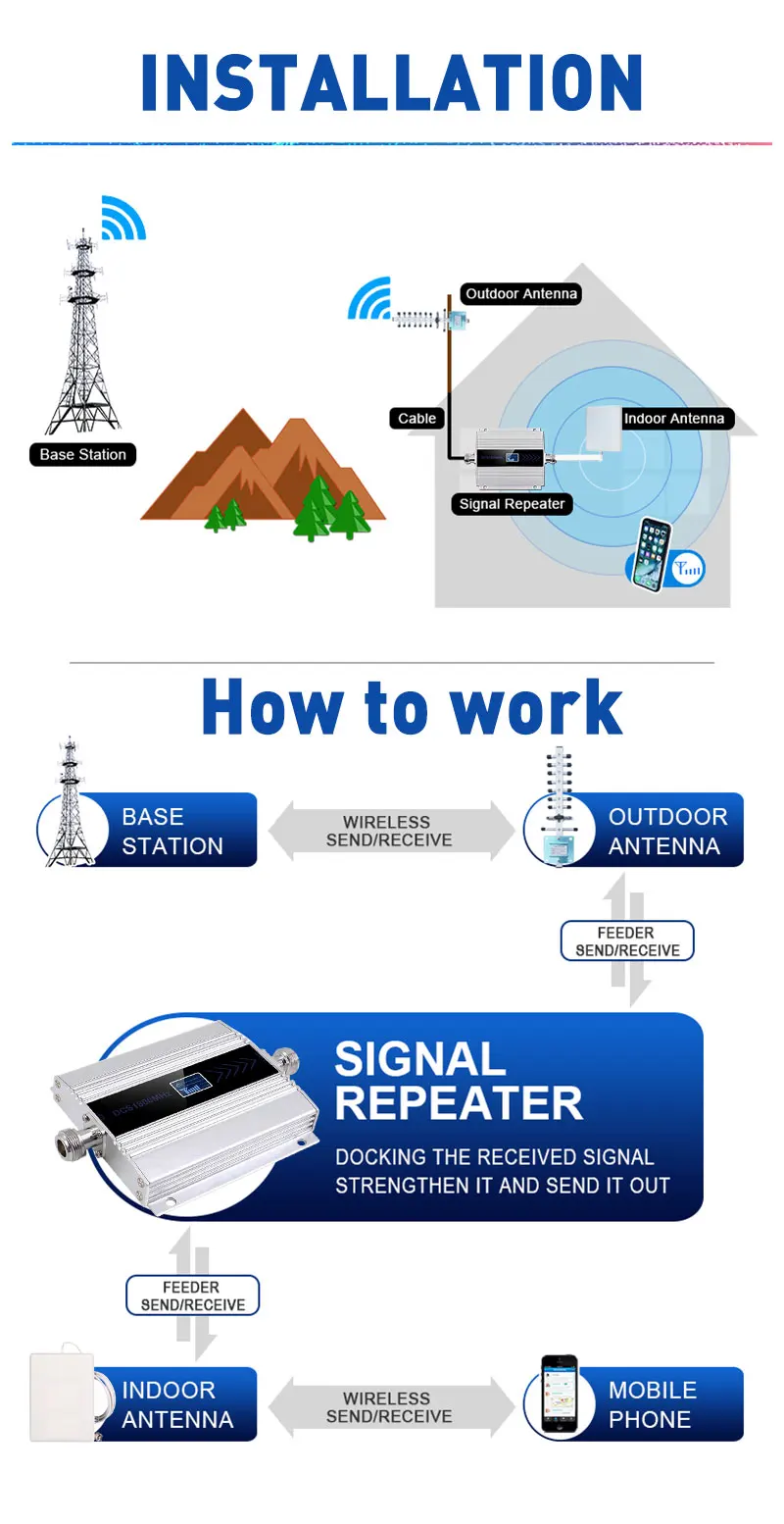 4. После этого сигнал в внутреннюю антенну (панель/потолок/штыревая антенна), наконец, ваш мобильный телефон будет улучшаться.