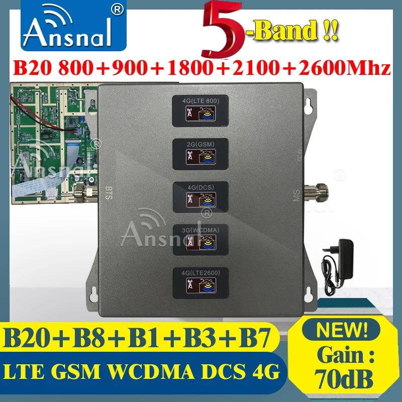 Frequency Band Five-Band B20 800 900 1800 2100 2600Mhz 4G Mobile Signal Booster