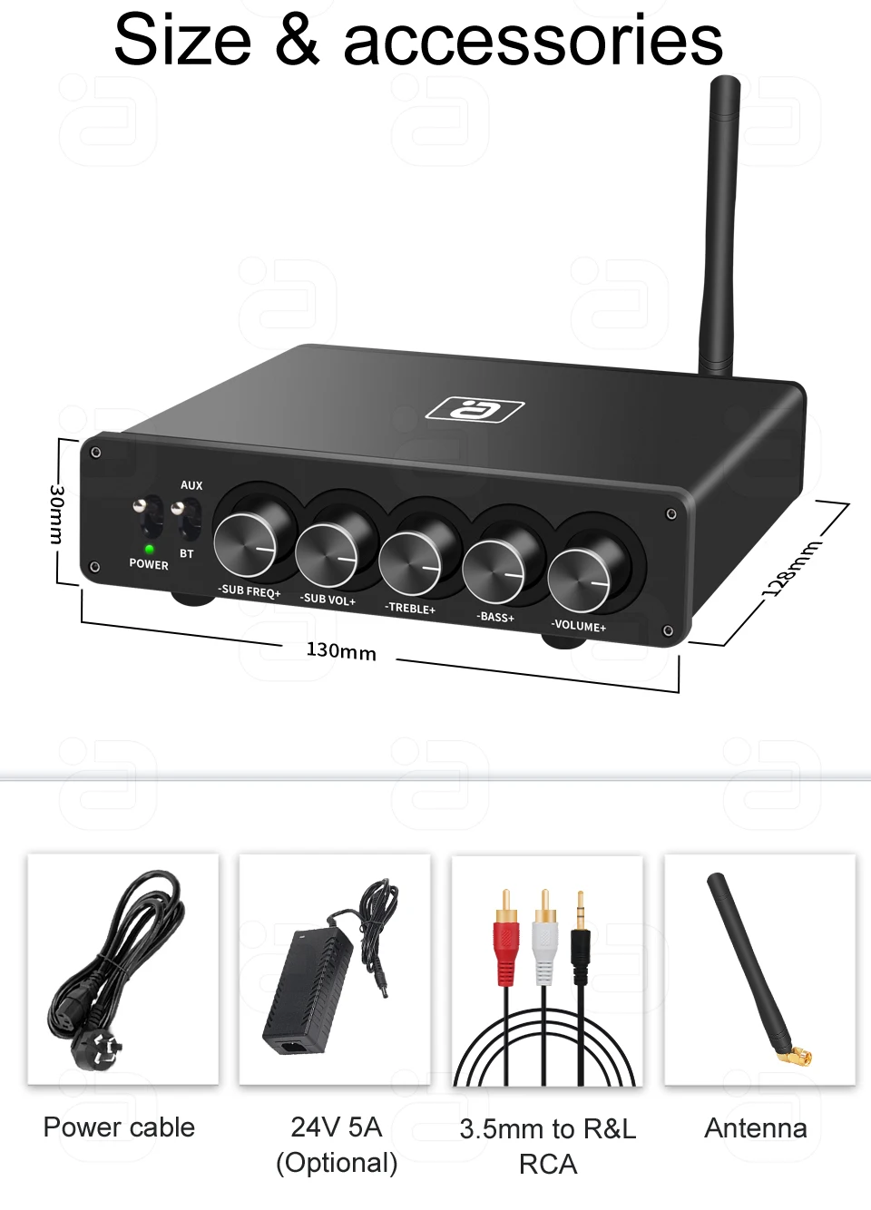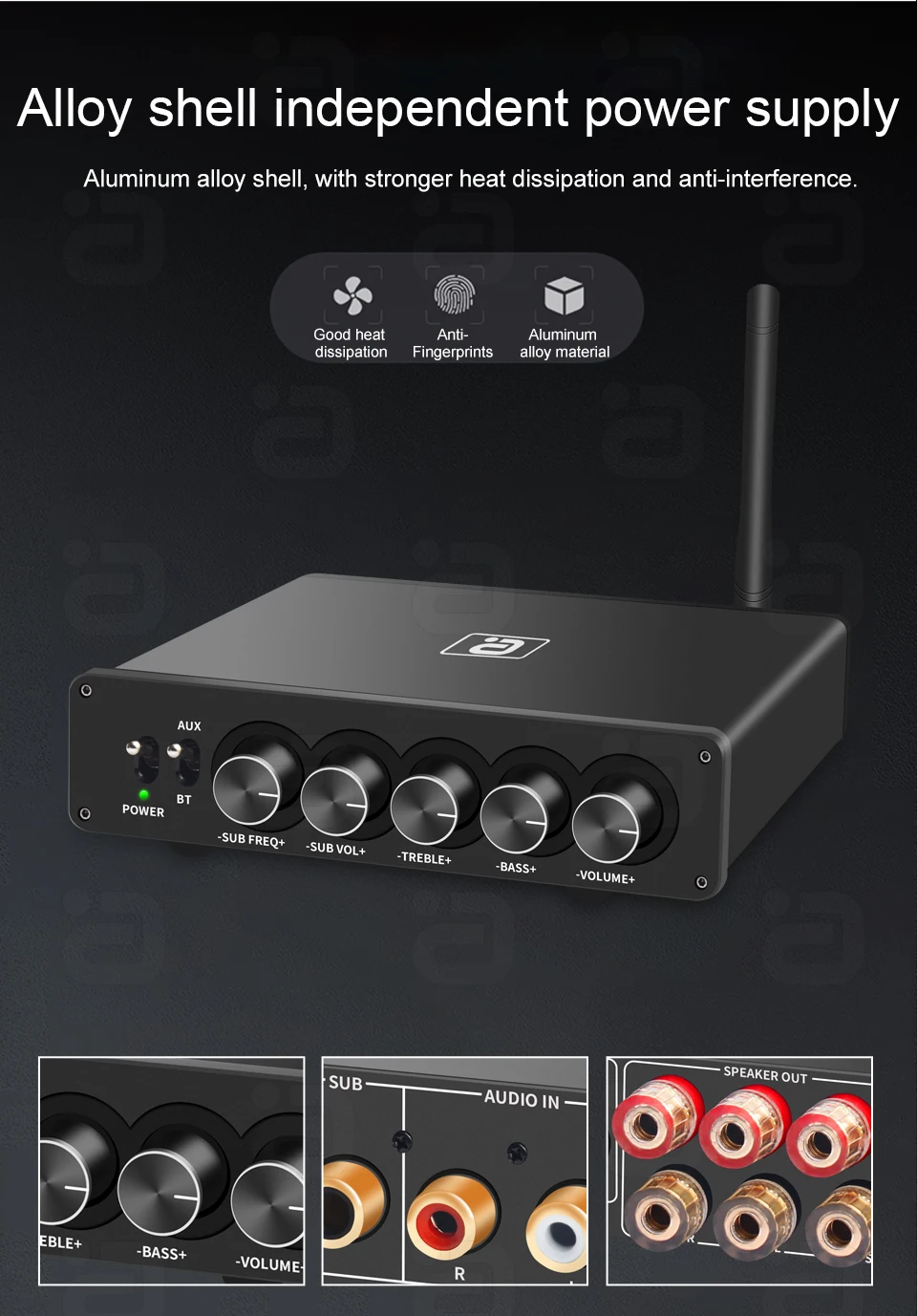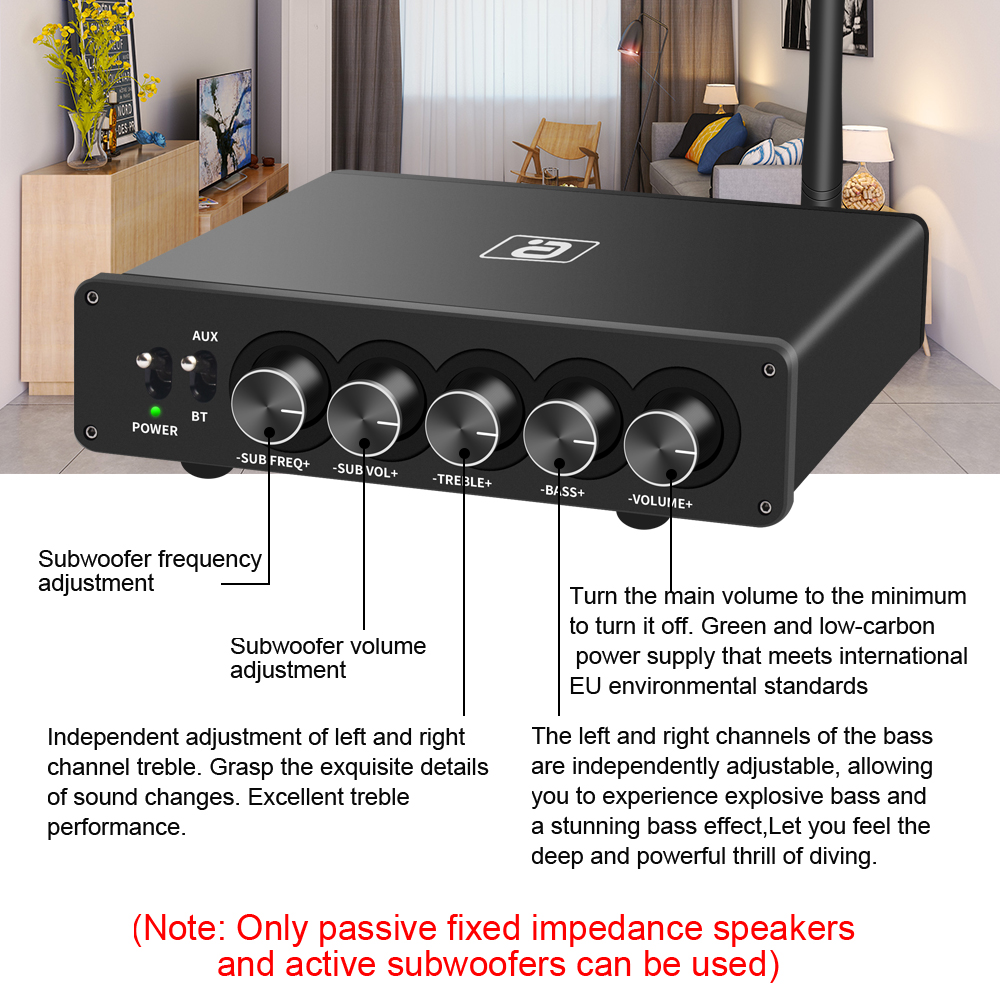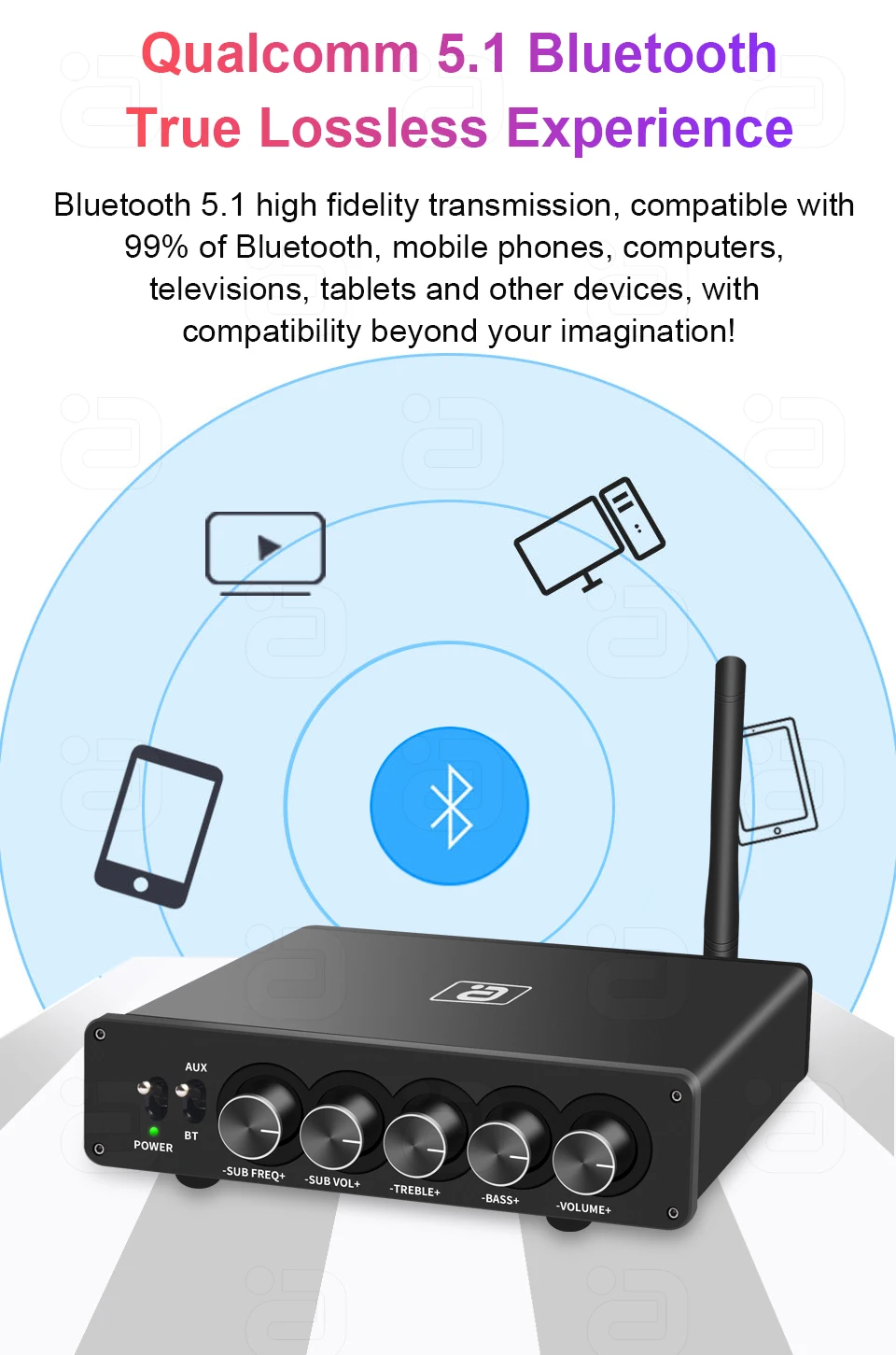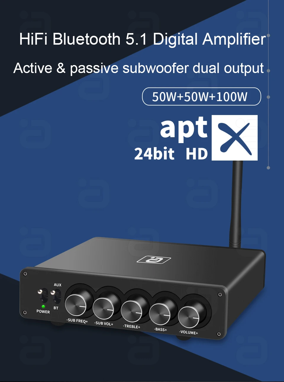 Усилитель звука aptX HD Bluetooth 5,1, 100 каналов, беспроводной аудиосабвуфер Вт + 50 Вт x2, усилитель басов и высоких частот для домашнего кинотеатра