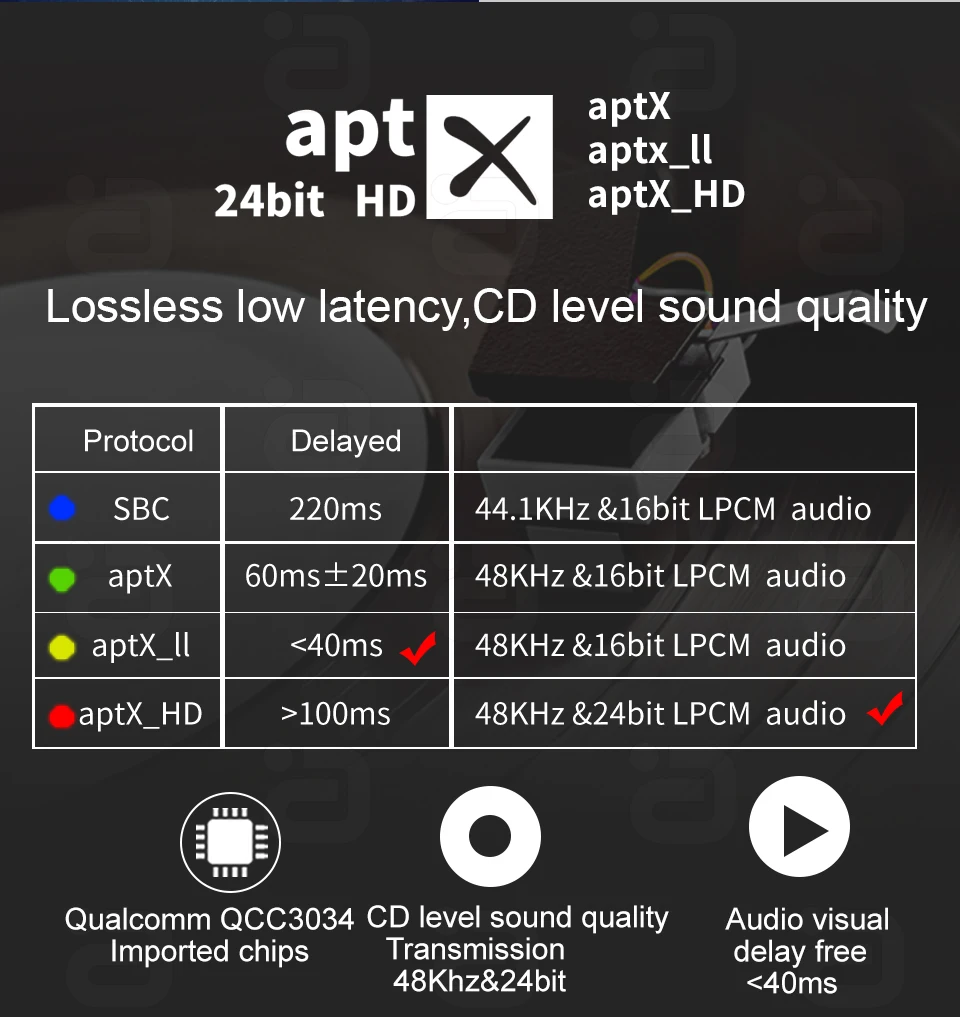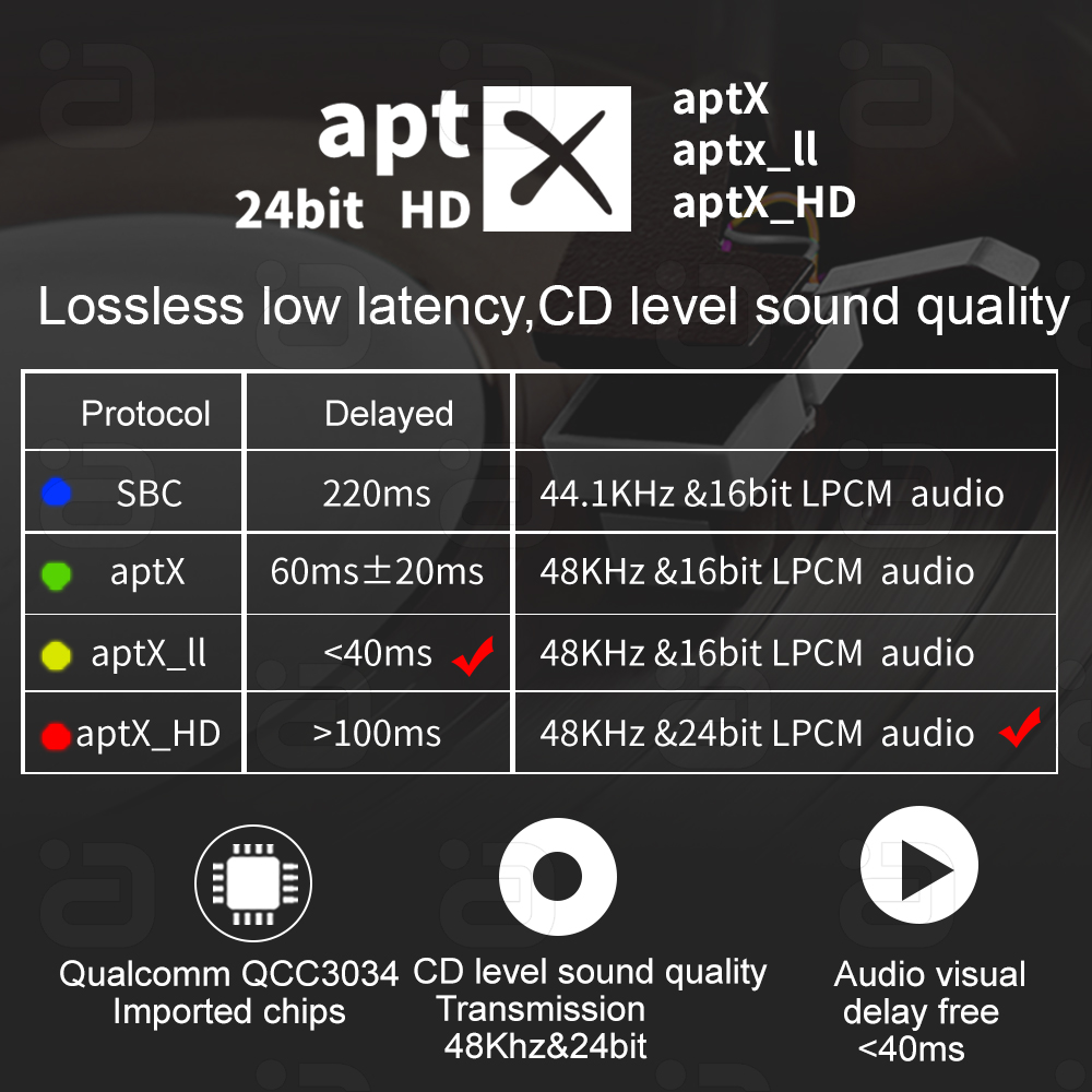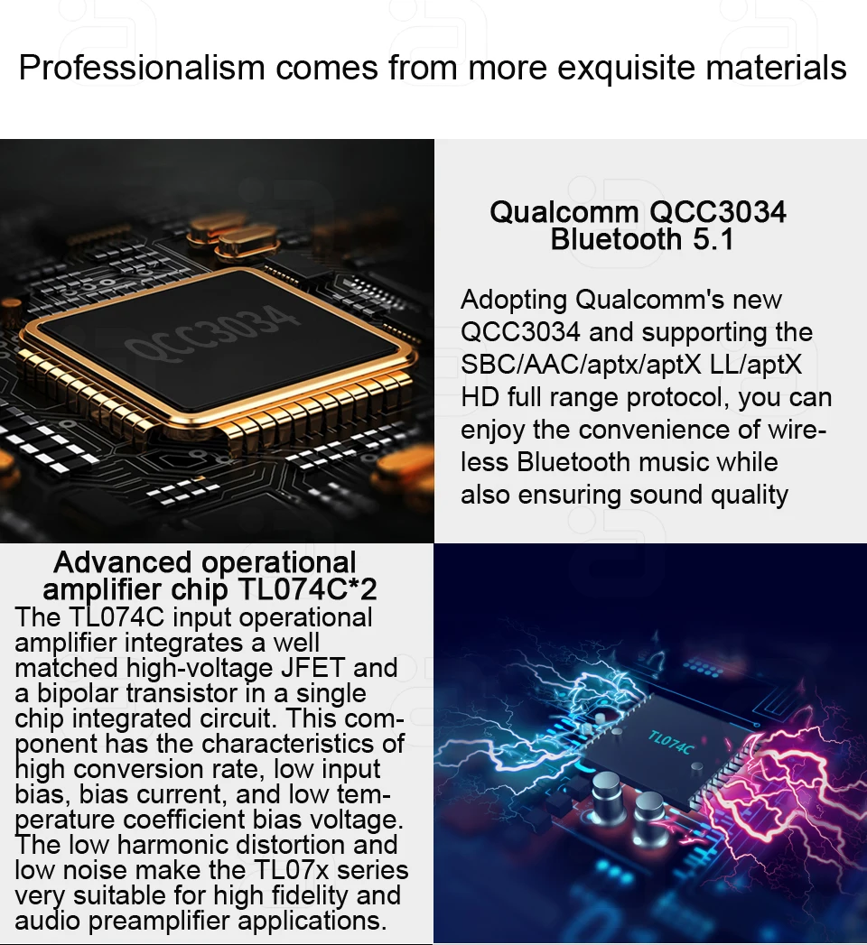 4. Bluetooth5.1 использует импортированный высококачественный Bluetooth-приемник QCC3034, поддерживает соединение Bluetooth без потерь aptX, aptxll, aptxHD.