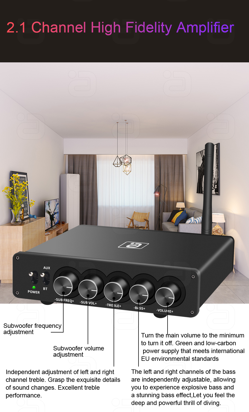 2. Поддержите регулировку частоты сабвуфера, вы можете настроить частоту низких частот в соответствии с вашими потребностями.