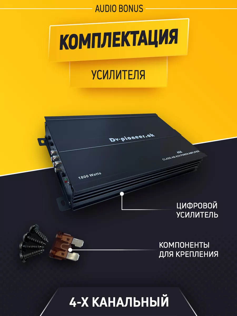 Артикул 118093471 Модель усилитель автомобильный; 4х-секционный стильный; усилитель звука 4-х канальный